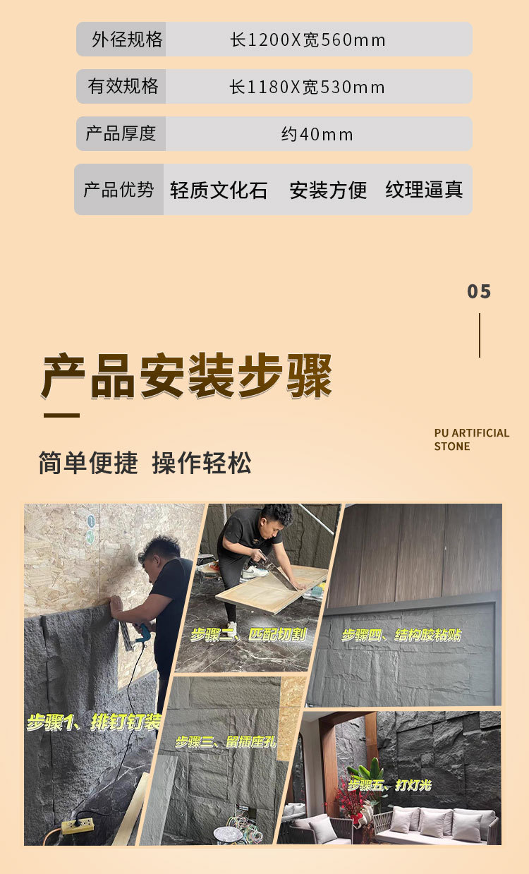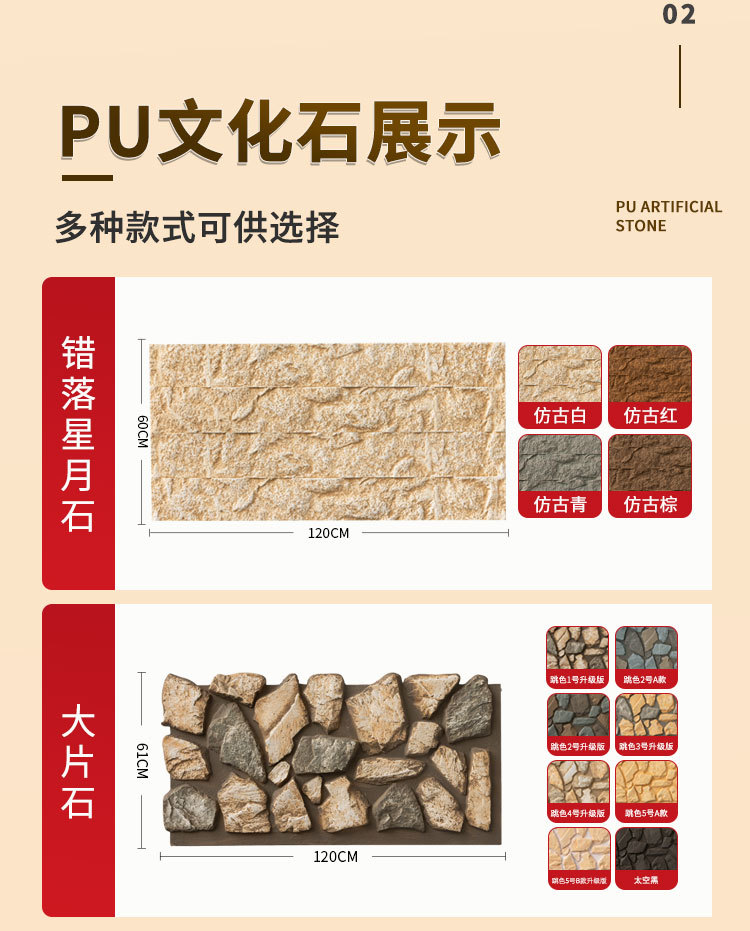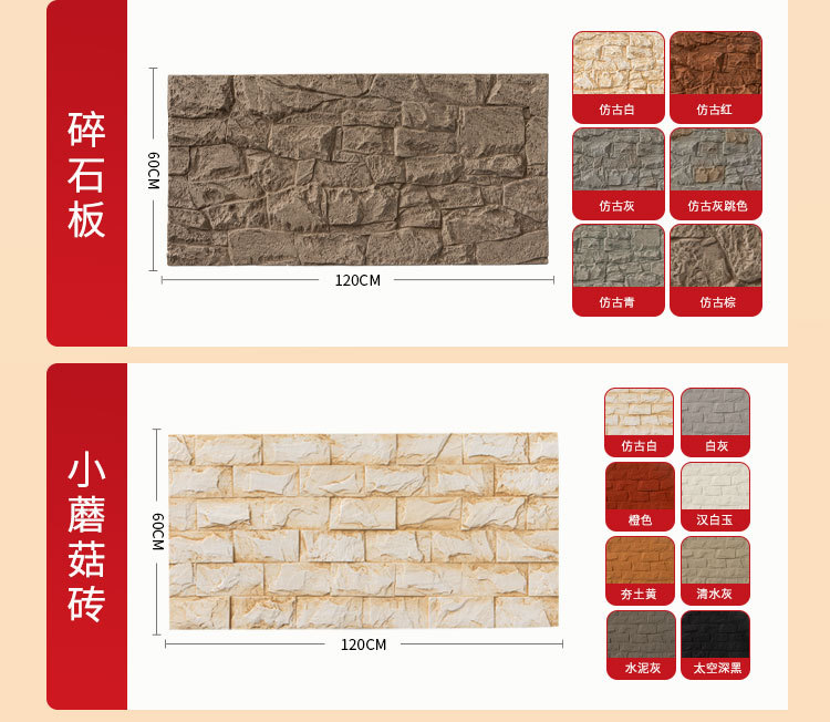Pu imitación de piedra cultura de piedra ladrillo de pared exterior de piedra PU pared de fondo de piel de piedra placa decorativa de patio exterior muros de piedra de lima de la villa