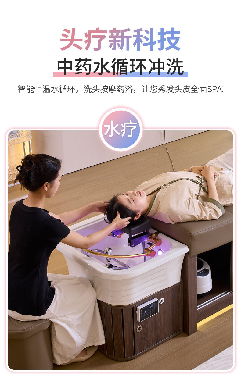 Cama de lavado de cabello de terapia de cabeza, calentador de agua de fumigación de circulación de agua a temperatura constante, sopa de cabeza, salón de peluquería y salón de belleza, cama de lavado de cabello tailandesa