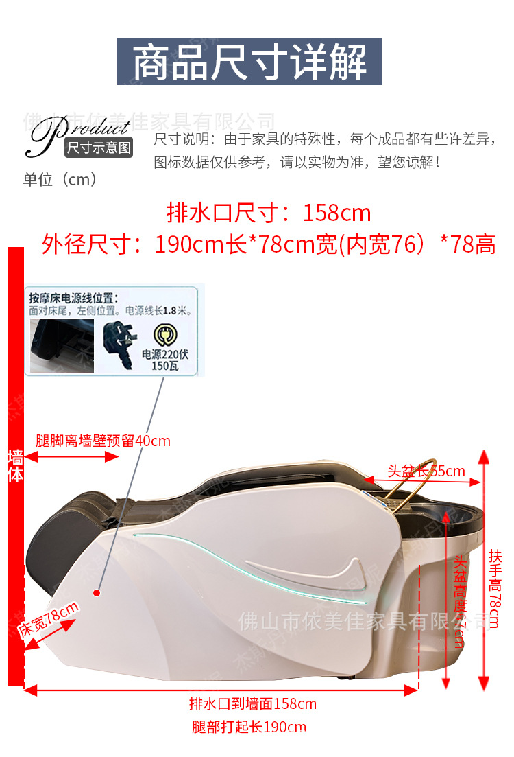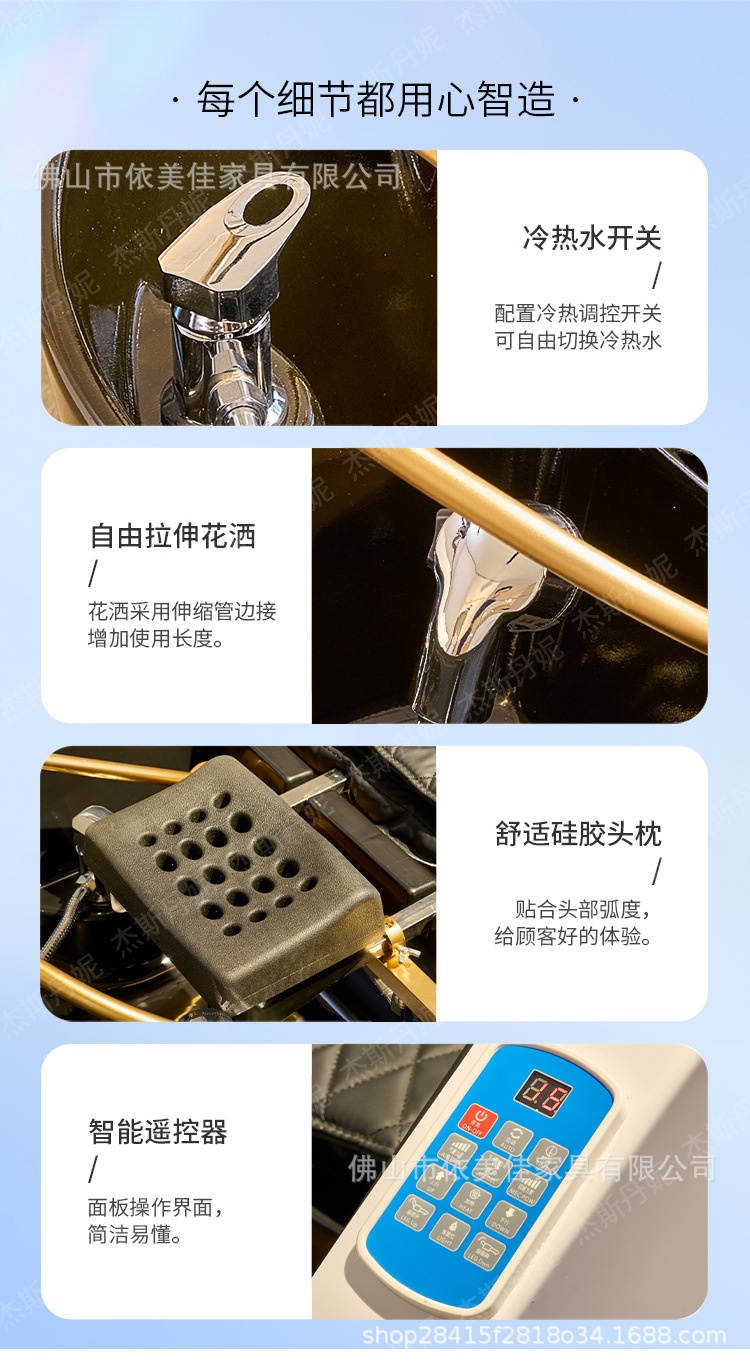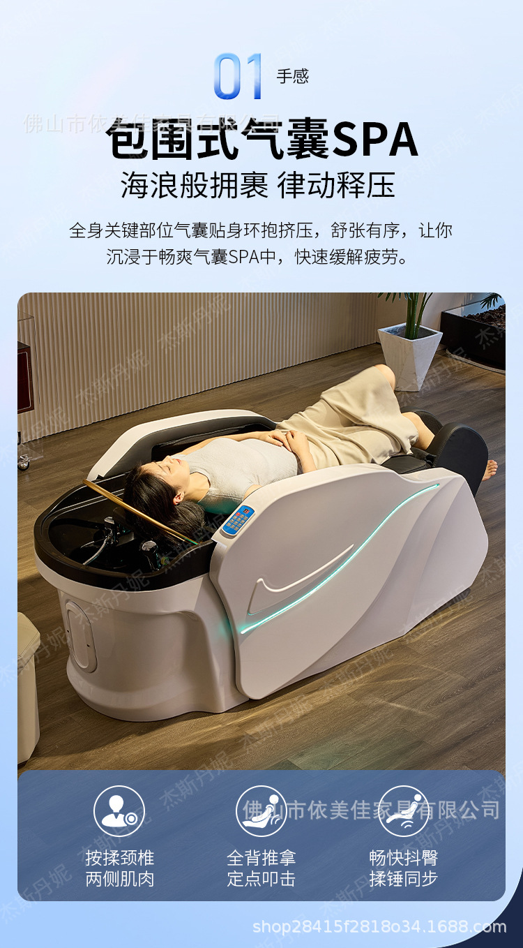 Cama de lavado de cabello de masaje eléctrico, cama de circulación de agua de tratamiento de cabello a temperatura constante, cama de curado de cabello de fumigación, cama especial para salón de peluquería de alta calidad