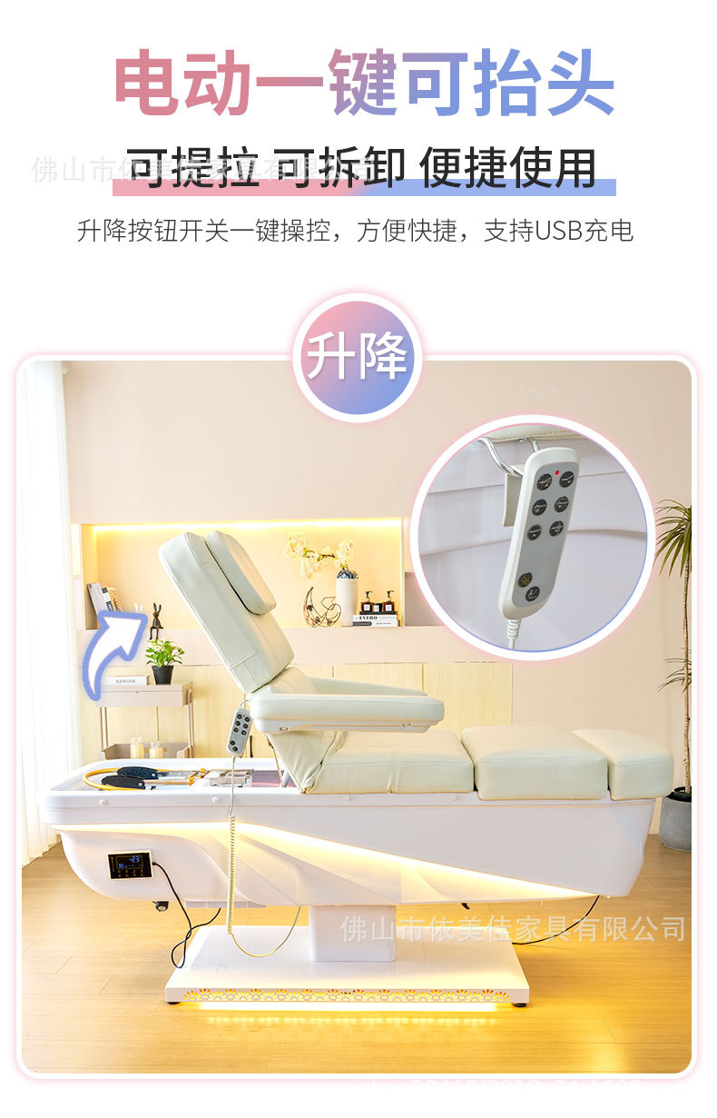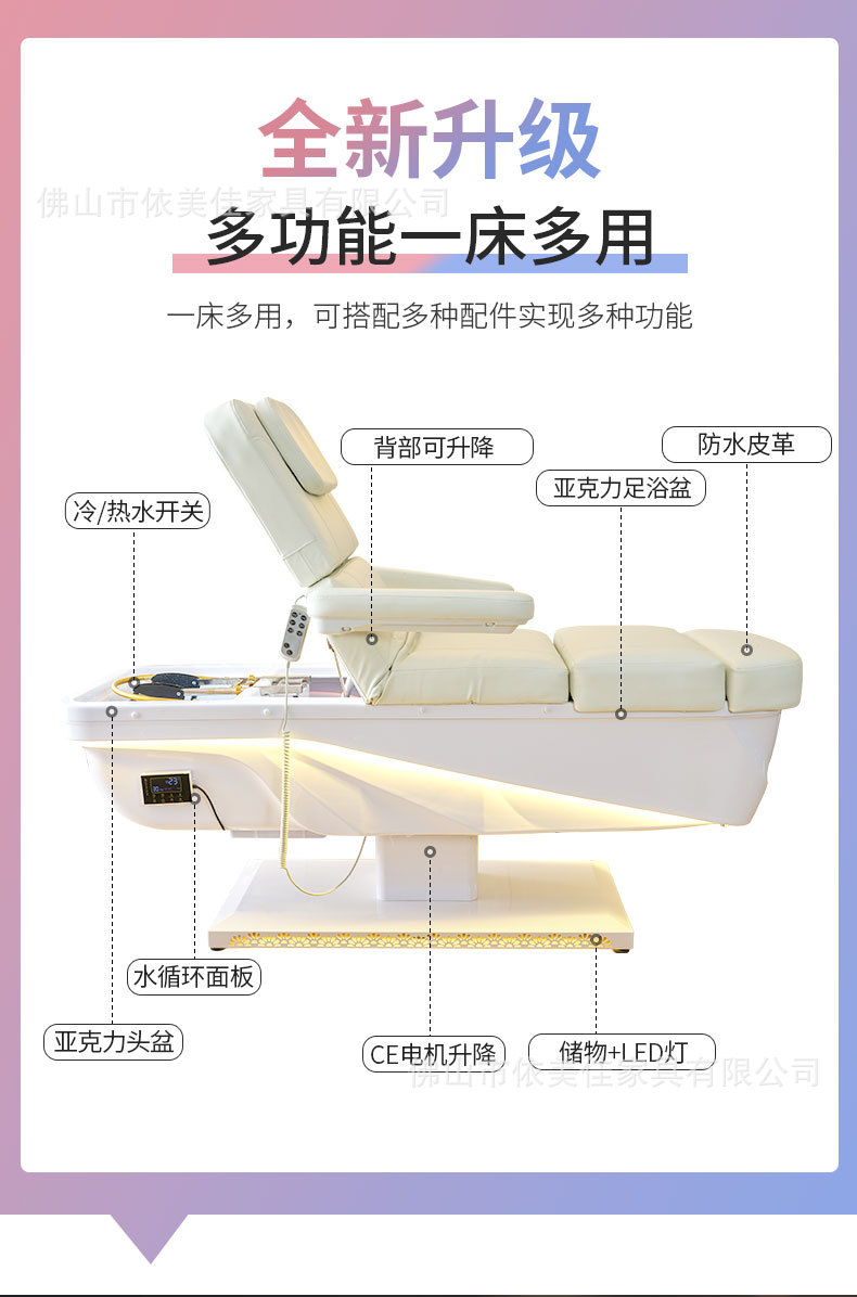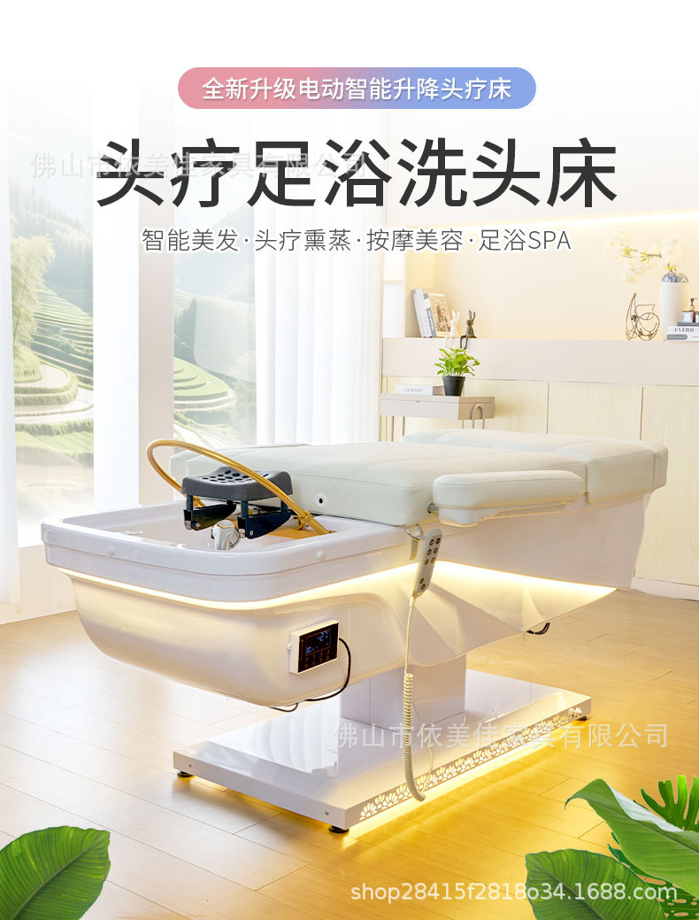 Nuevo elevador eléctrico lavabo cama de tratamiento de cabeza con terapia de pedos temperatura constante circulación de agua calentador de agua proyecto de fumigación cama de huéspedes