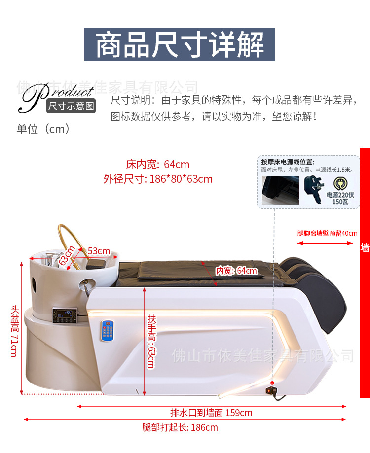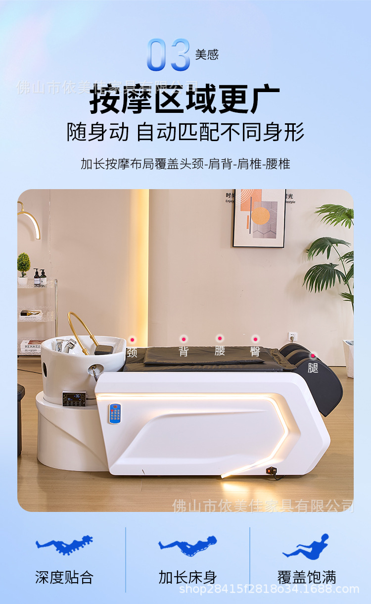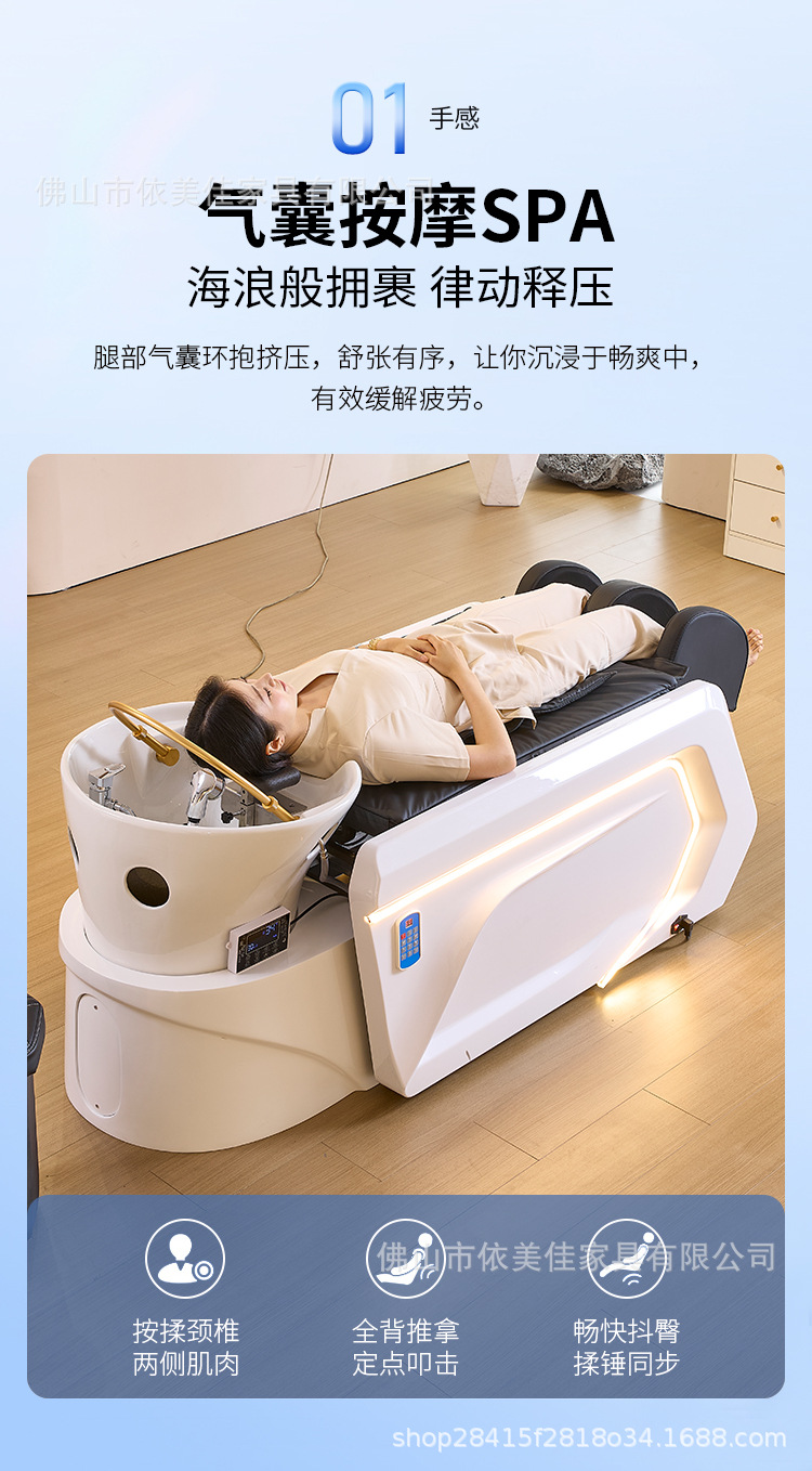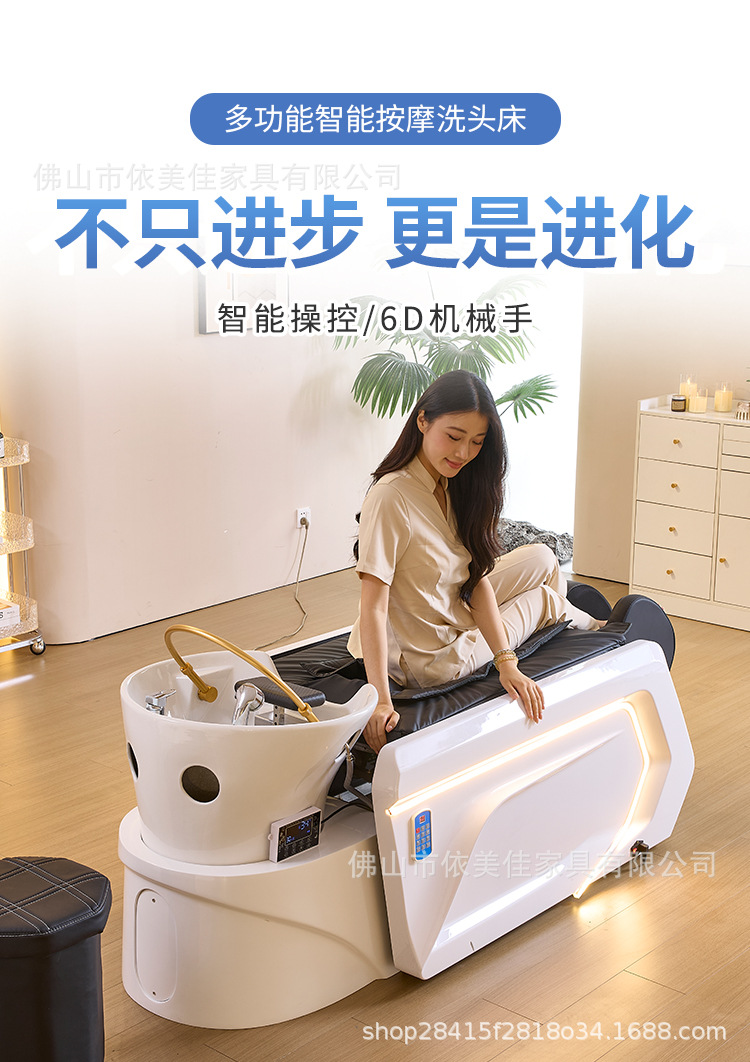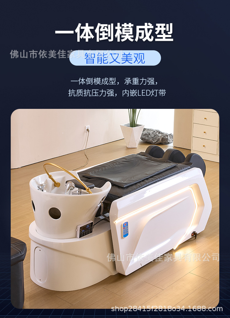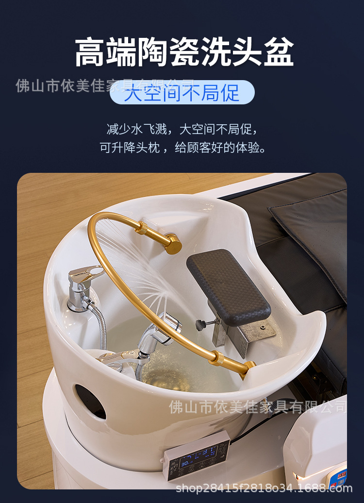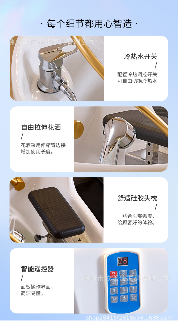 Barbería cama de lavado de cabello cama de masaje eléctrica inteligente automática especial para salón de cabello cama de lavado de cabello cerámica lavabo profunda