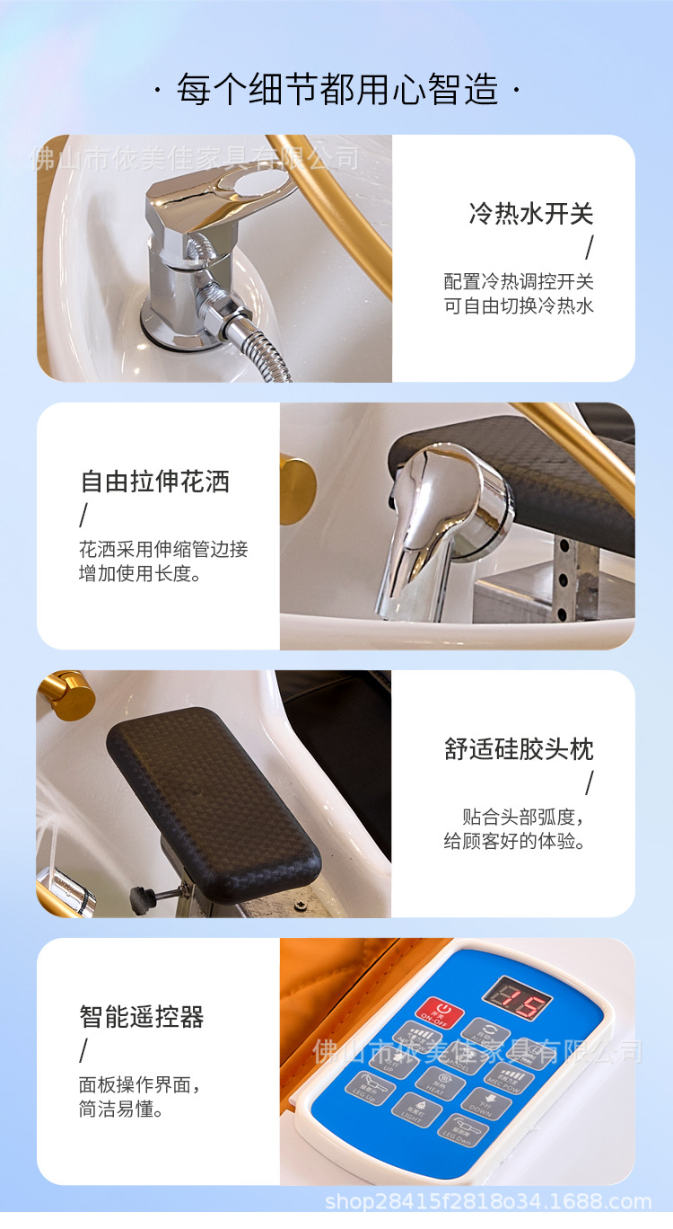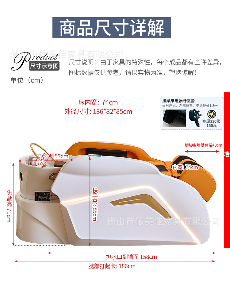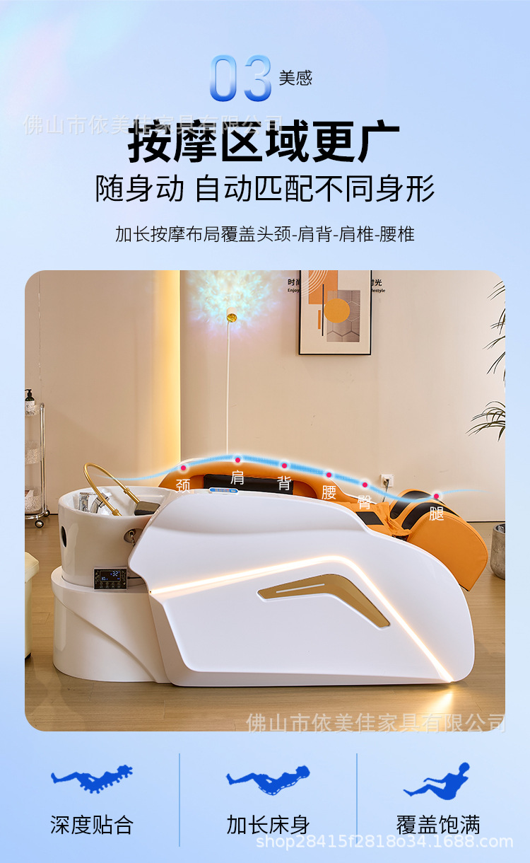 Cama de lavado de masaje eléctrico, salón de belleza, salón de belleza, cama de lavado de agua, salón de belleza, agua de circulación de cabeza de curación, cama de champú de cabello