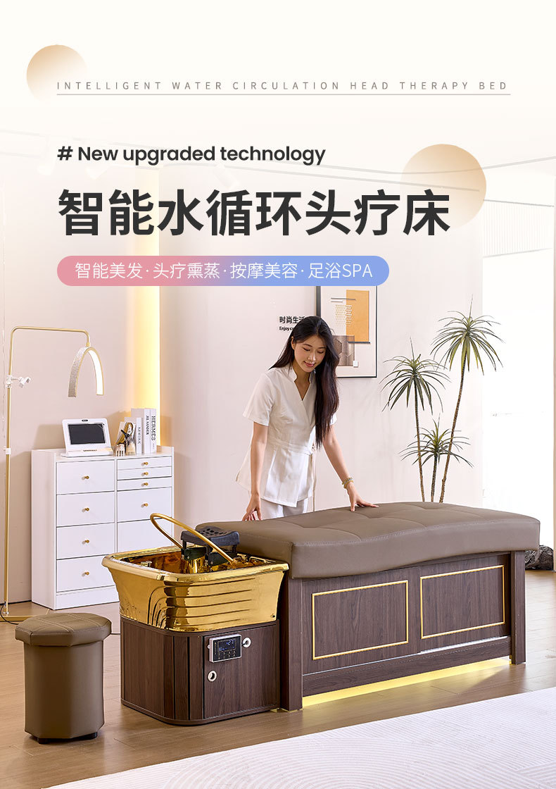 Cama de lavado de cabello, cama de tratamiento de cabello tailandés, salón de belleza especial con calentador de agua, fumigación de circulación de agua, masaje, cama de reclinación completa