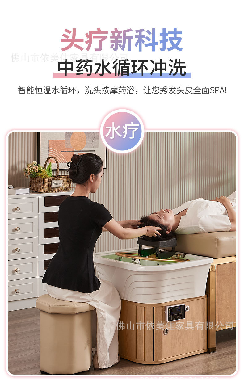 Cama de tratamiento de cabeza tailandesa de alta gama, lavabo de cabeza, calentador de agua de fumigación, circulación de agua integral, salón de belleza, peluquería especial