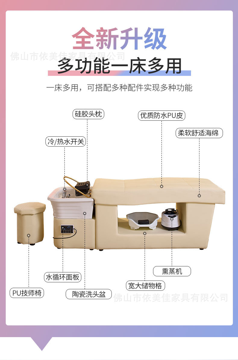 Lavabo de cerámica, masaje, cama de champú, cama de terapia de cabeza gruesa, circulación de agua, cama de descarga, sopa medicinal, peluquería, salón de belleza, centro de salud