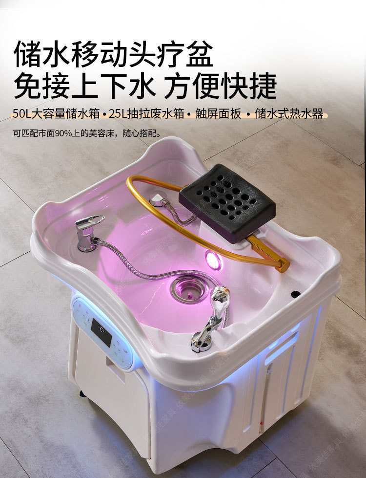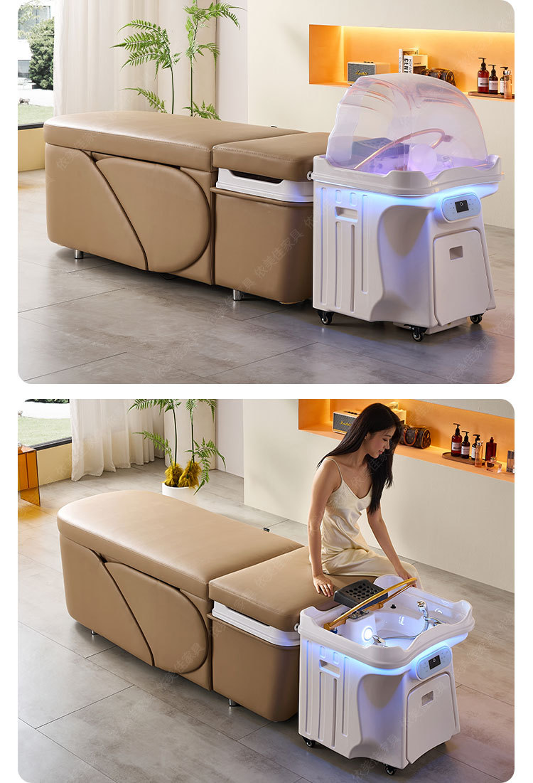 Máquina de lavado de cabello de fumigación automática con agua circulante y cama de lavado de cabello móvil para salón de belleza para tratamiento de cabello