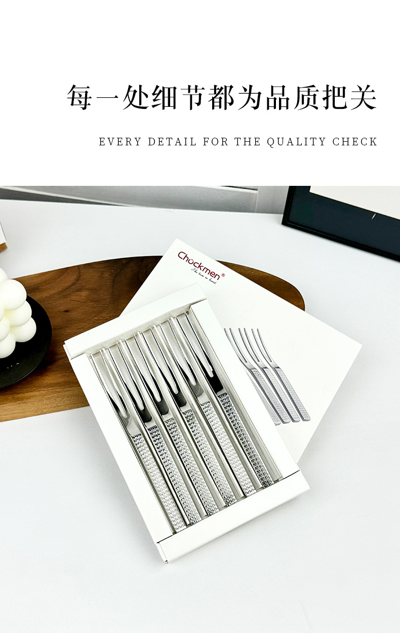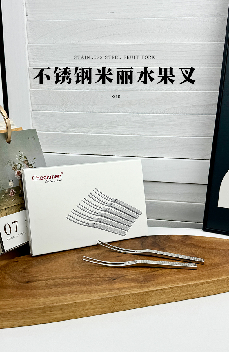 Chockmen Zhuo Deming 18 / 10 horquilla de fruta de acero inoxidable 6 piezas horquilla de pastel caja de regalo horquilla de postre creativa