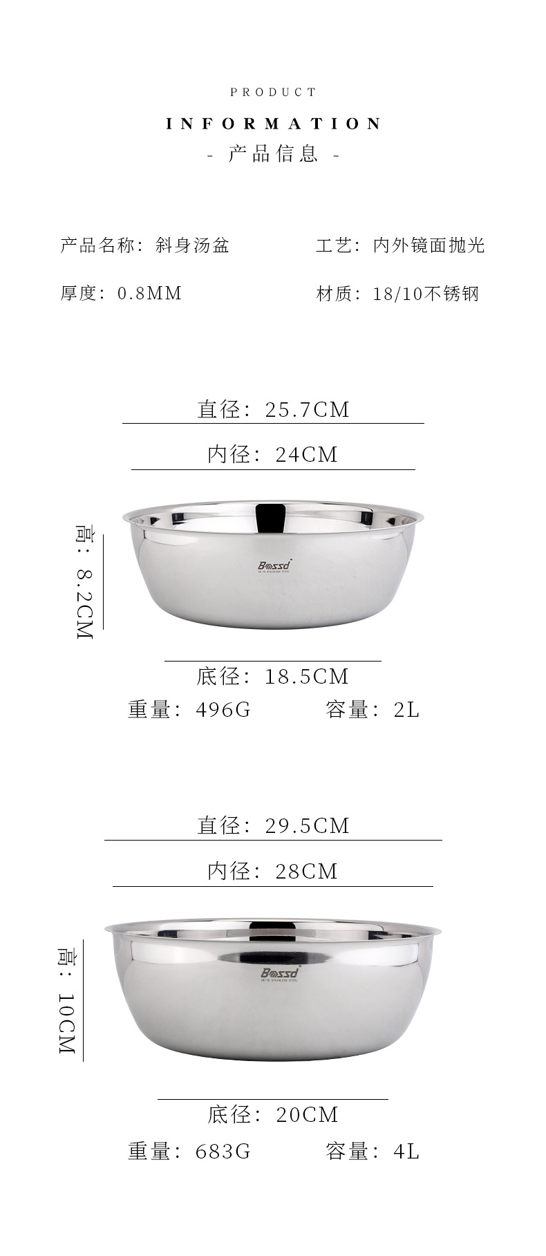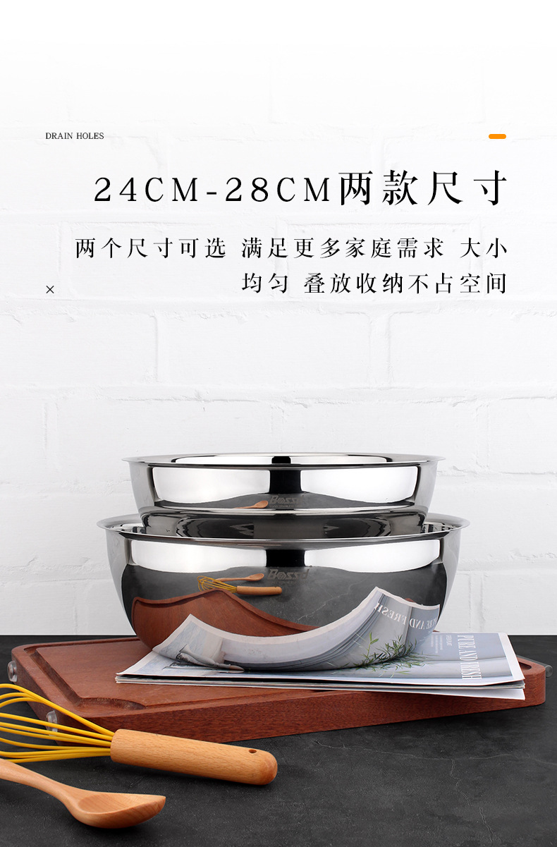 18 / 10 acero inoxidable grueso 24cm / 28cm lavabo de verduras y lavabo multipropósito para preparar verduras para preparar sopa lavabo de cocina
