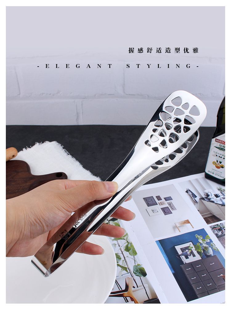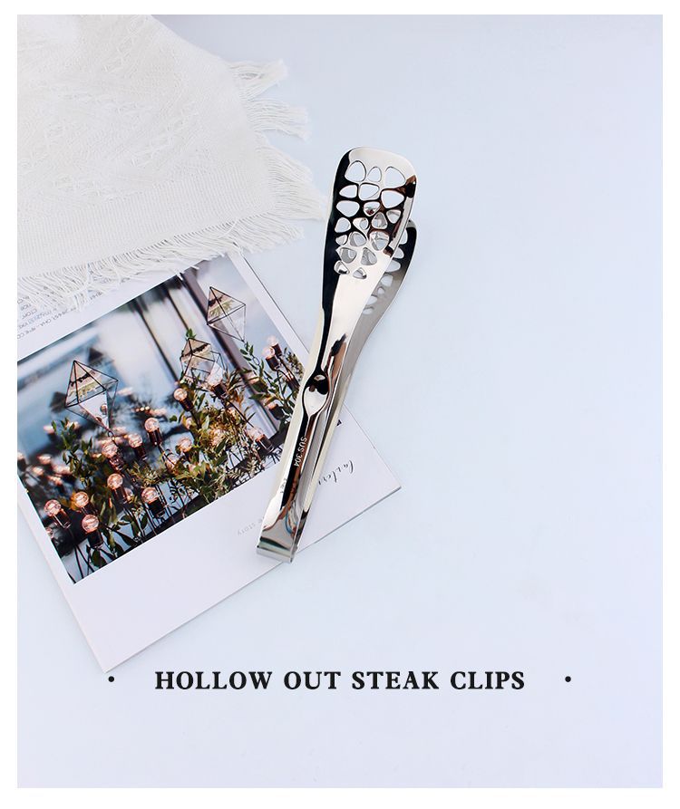 COOKONE18 / 10 acero inoxidable grueso hueco clip de filete clip de comida clip de pan a prueba de agua clip de cara comercial