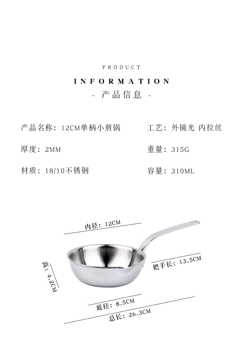 Julia mini sartén ins mini sartén de huevos 18 / 10 acero inoxidable crema caliente de salsa de frito 12cm