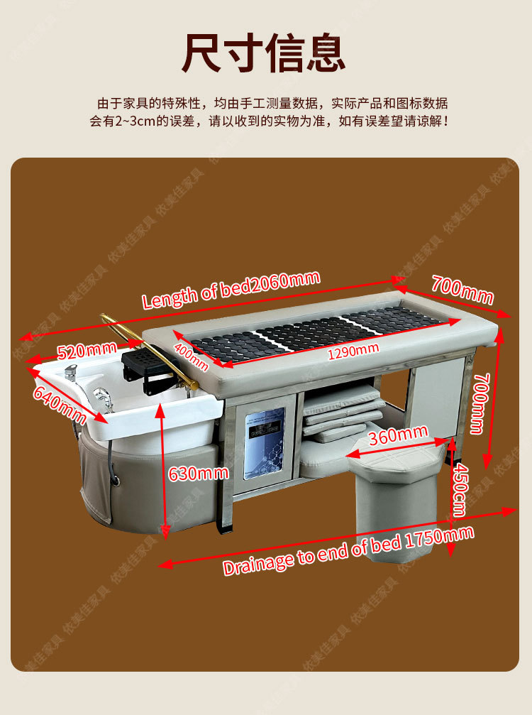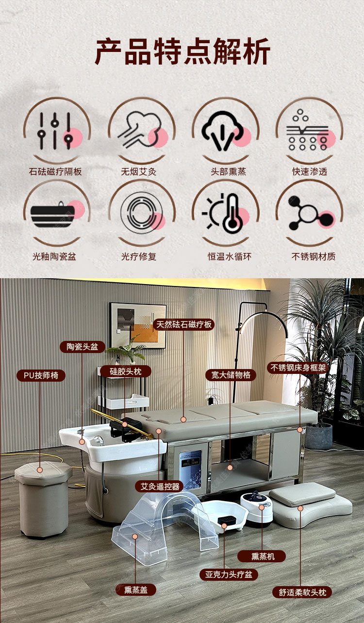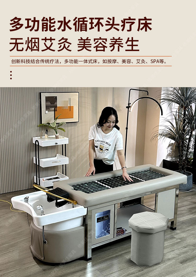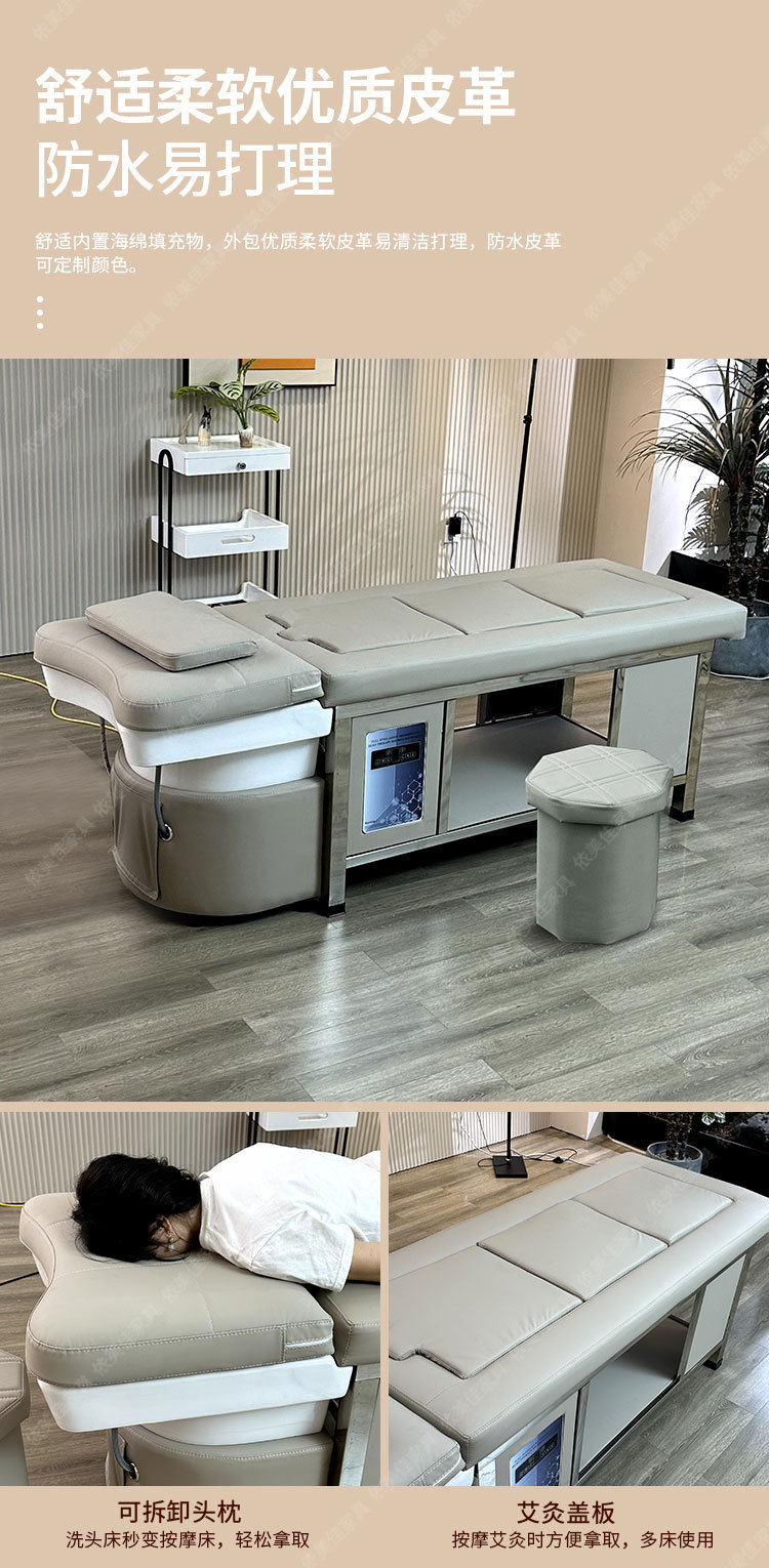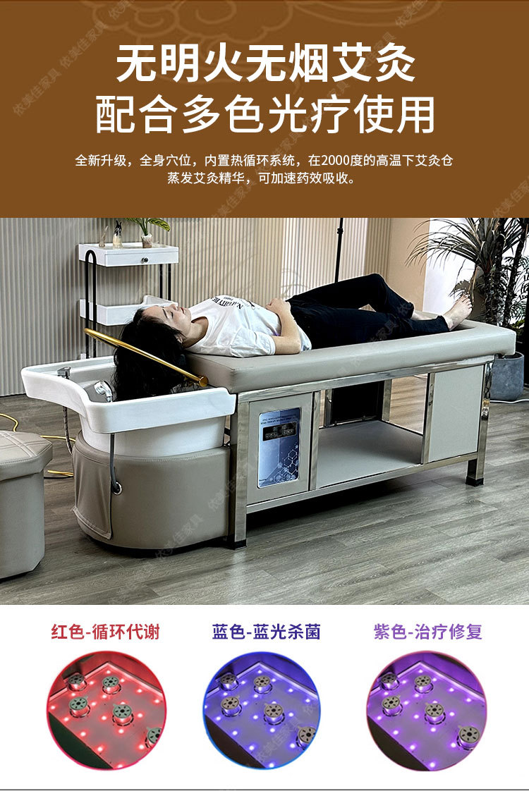 Cama de moxibustión transfronteriza de alta gama con marco de acero, cama de lavado de cabello tailandés, cama de fumigación de circulación de agua a temperatura constante especial para salón de belleza