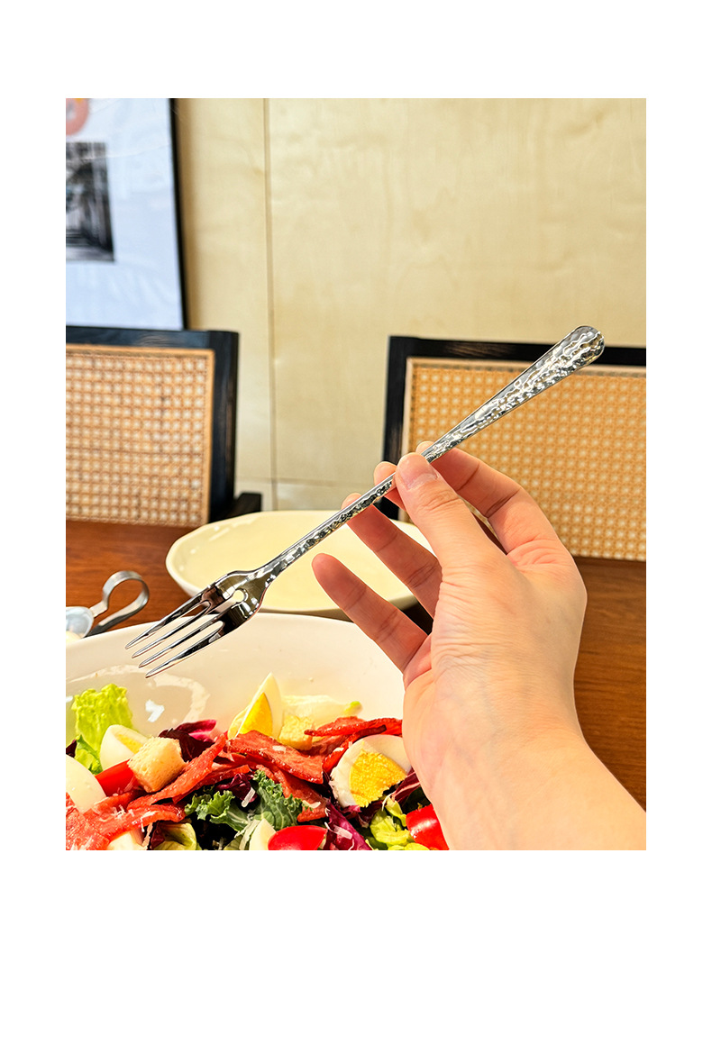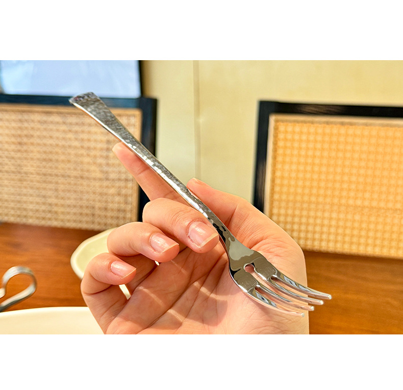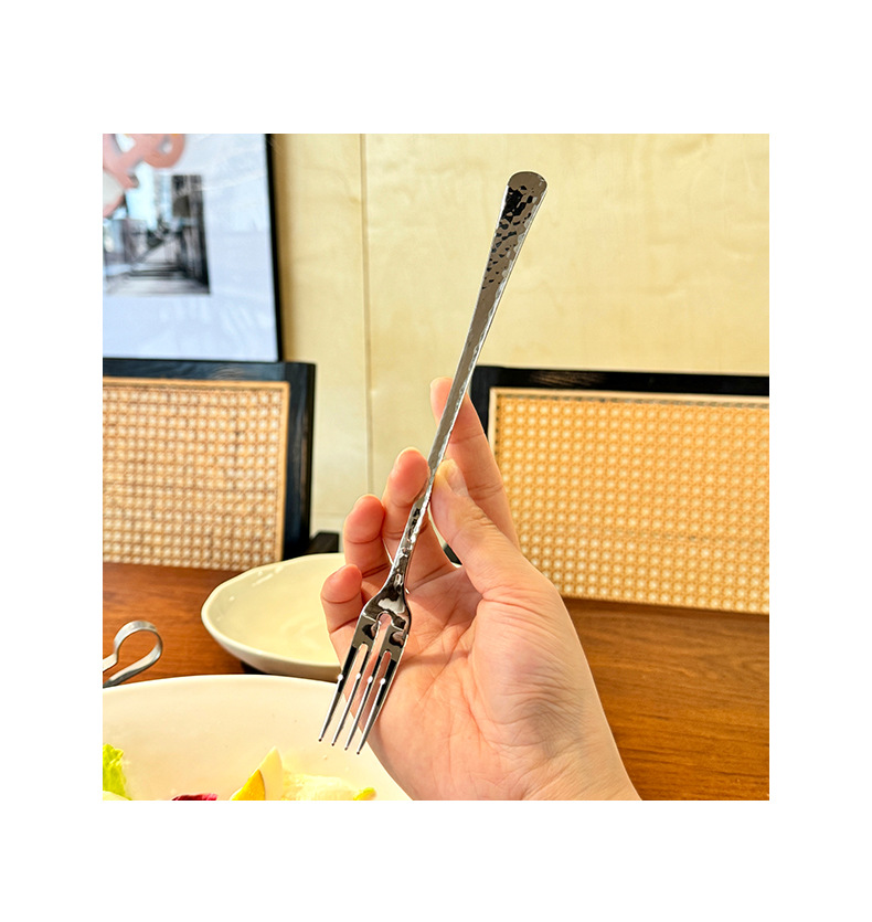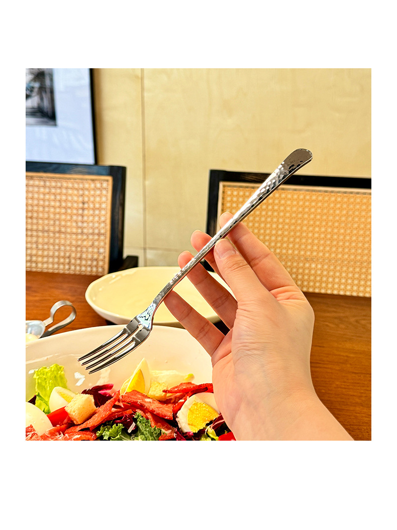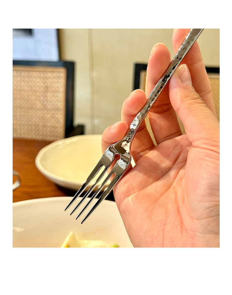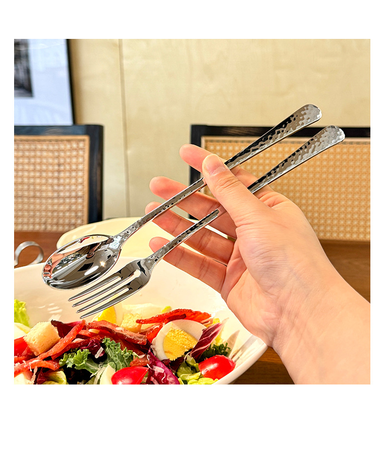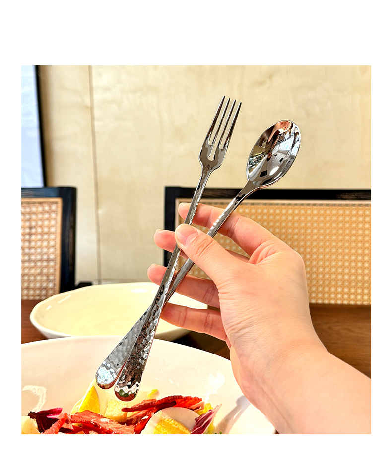 Chockmen18/10 tenedor de comida occidental de acero inoxidable cuchara de comida occidental patrón de martillo engrosamiento postre tenedor cuchara té de la tarde tenedor de fruta