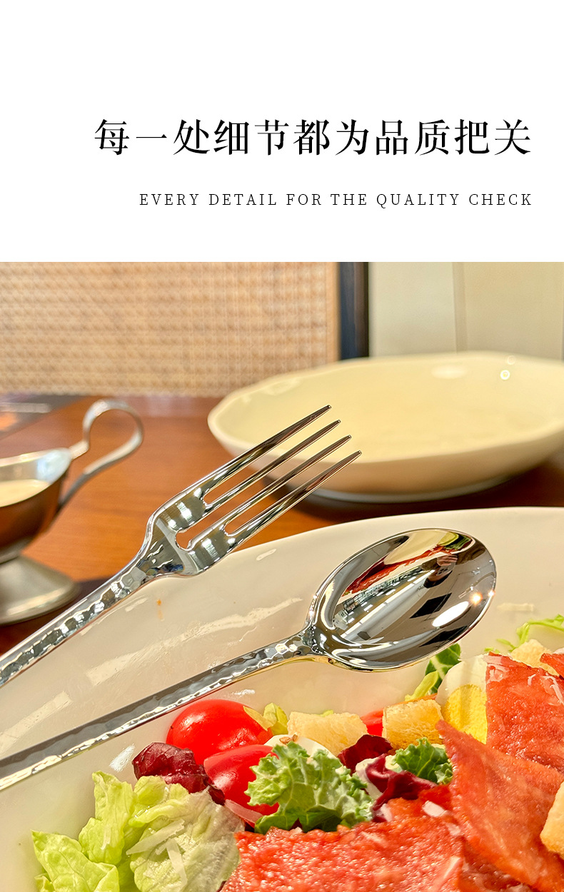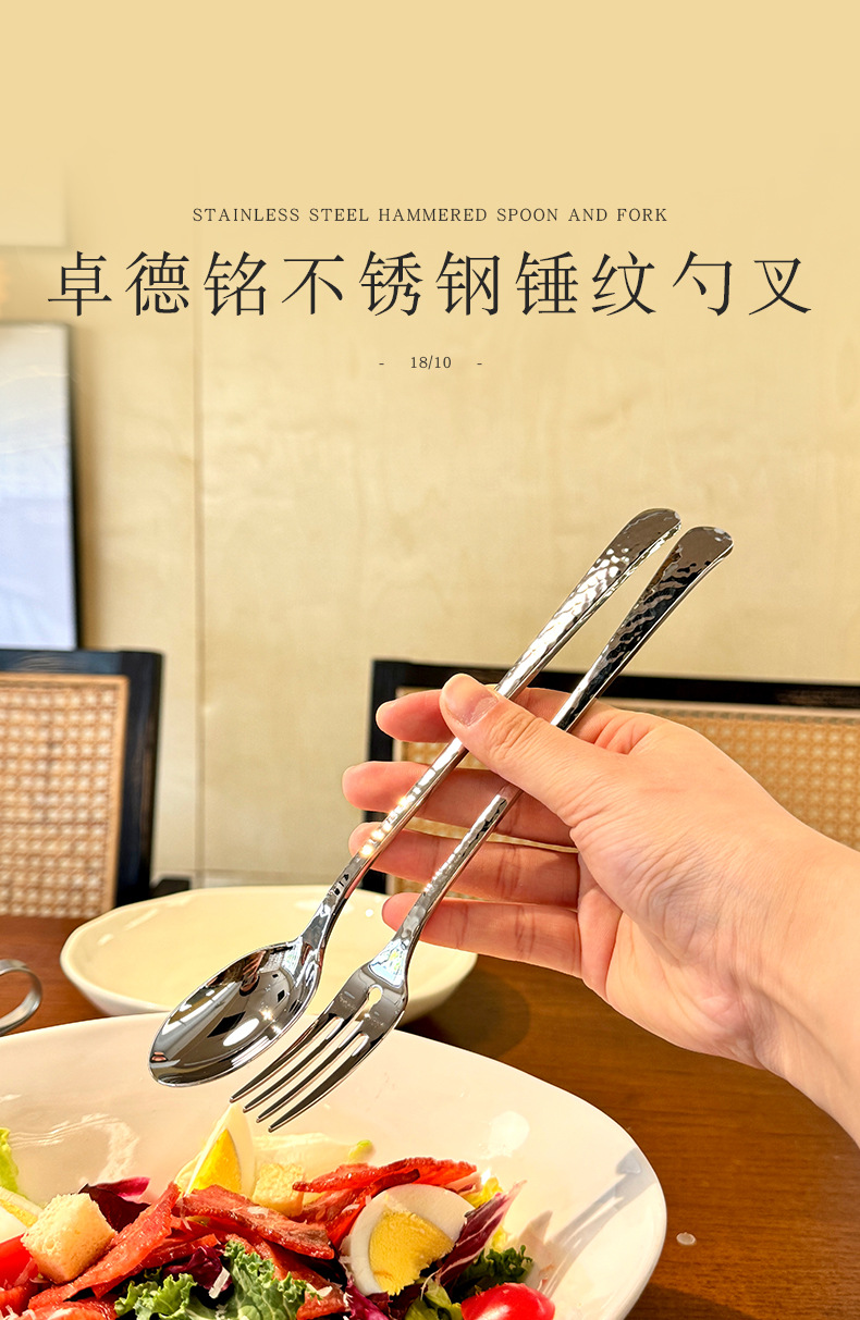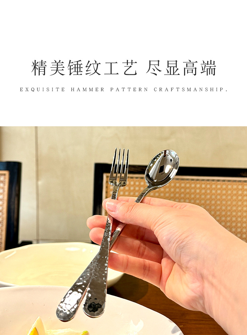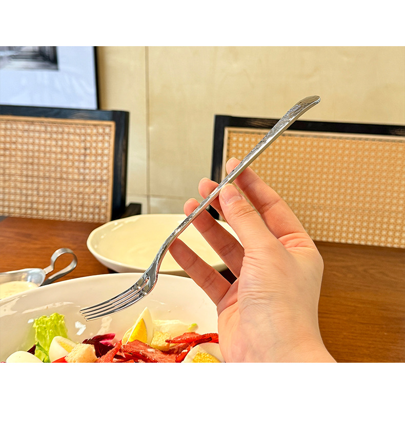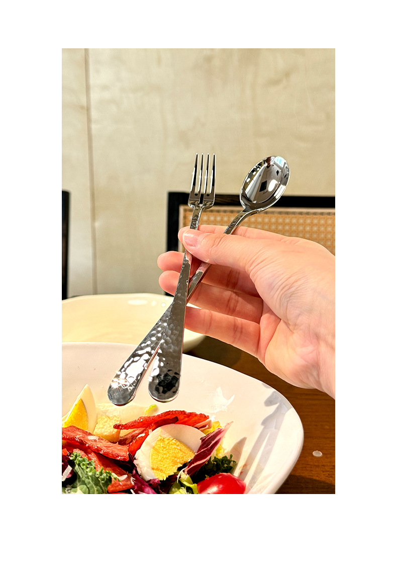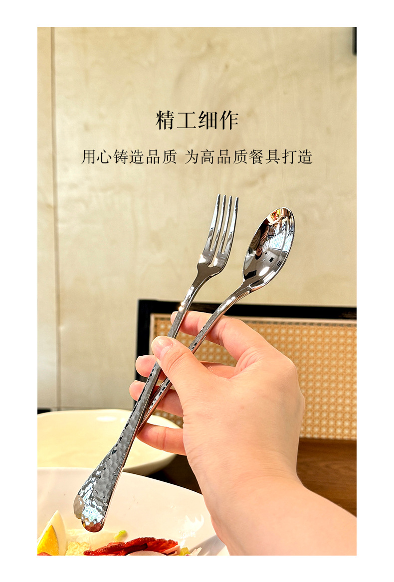 Chockmen18/10 tenedor de comida occidental de acero inoxidable cuchara de comida occidental patrón de martillo engrosamiento postre tenedor cuchara té de la tarde tenedor de fruta