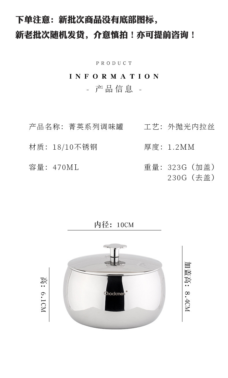 Chockmen Zhuo Deming 18 / 10 Taza de acero inoxidable Taza de frutas Taza de azúcar Taza de sal Taza de condimento Taza de dulces