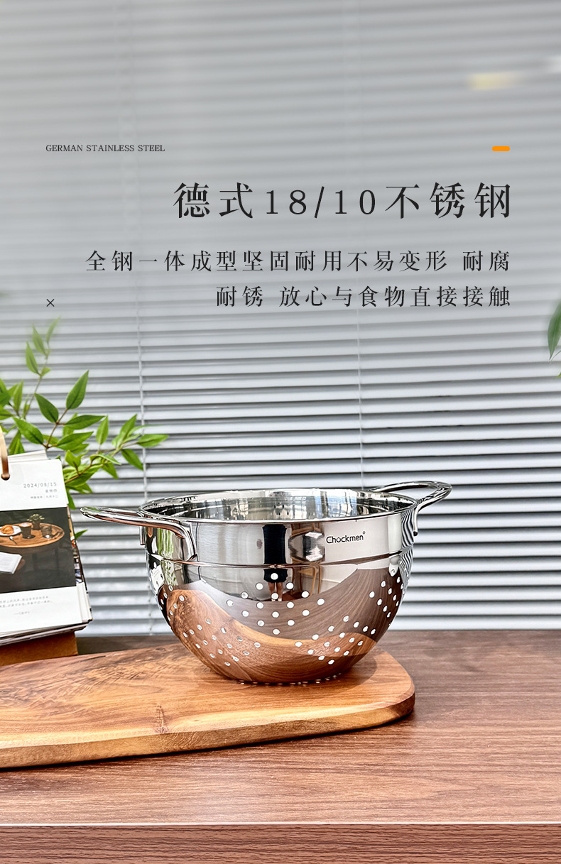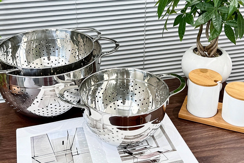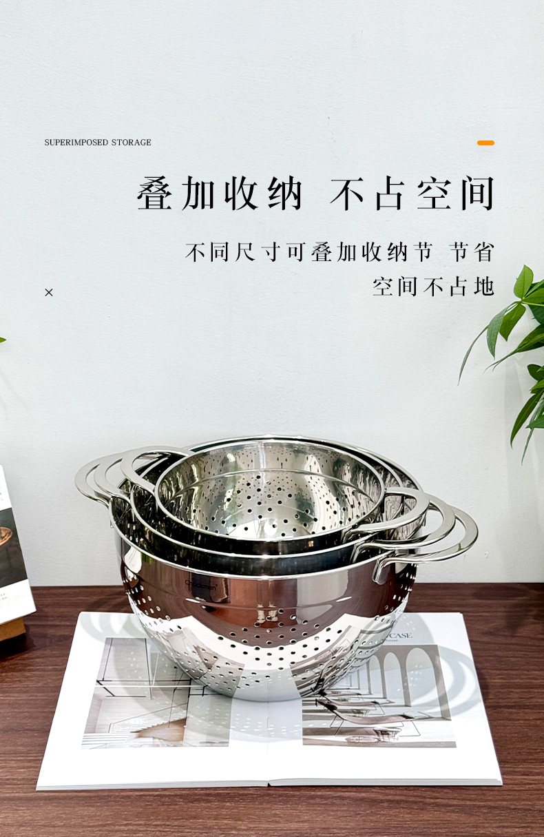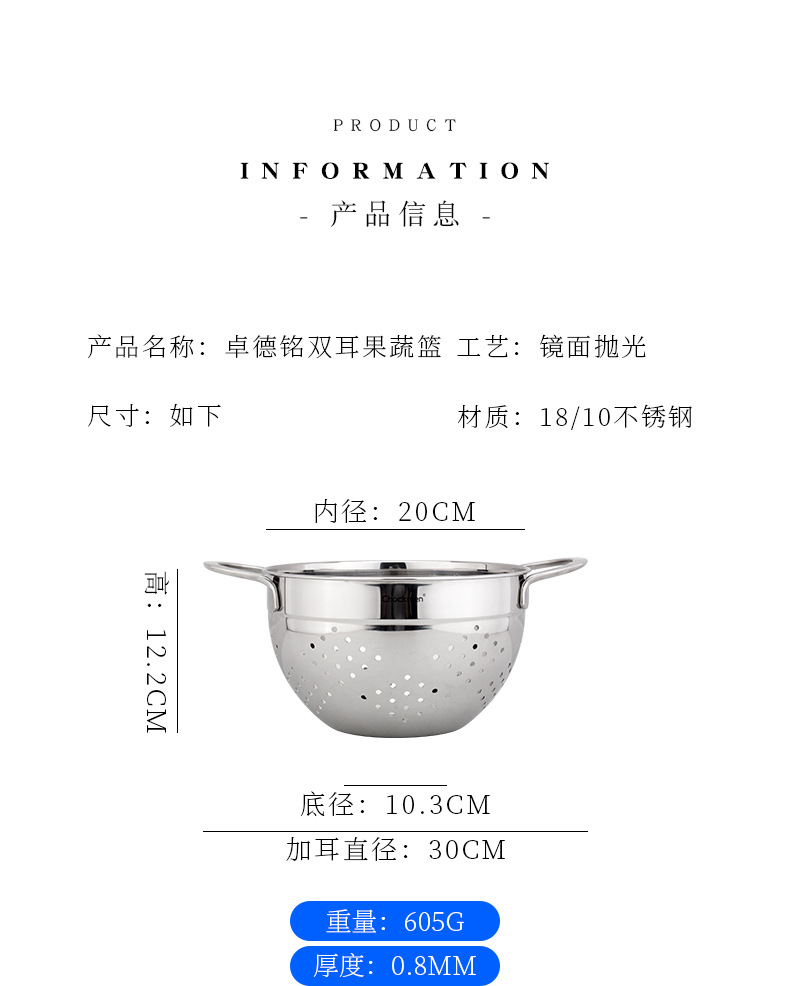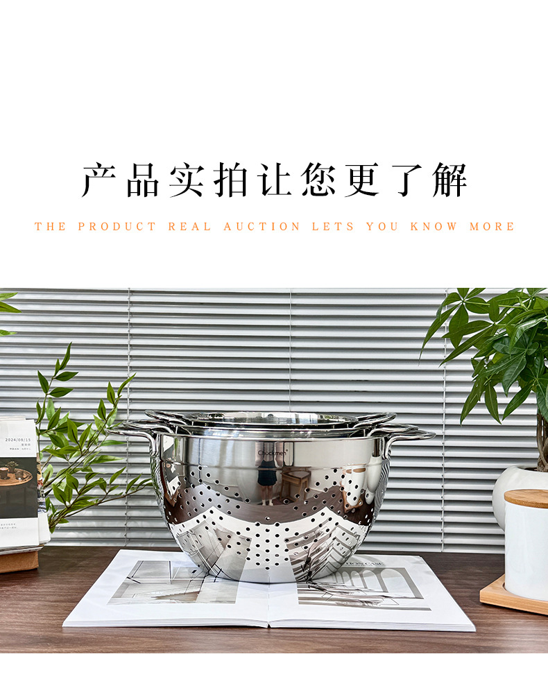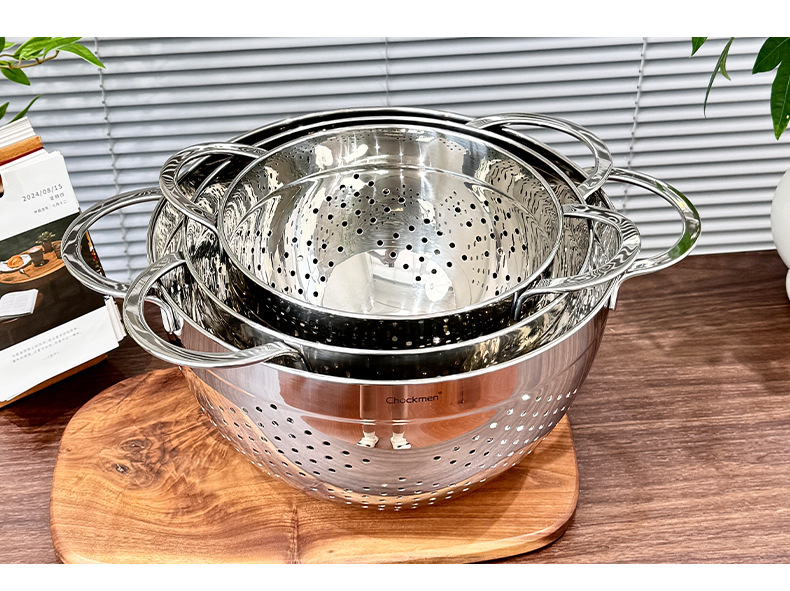 Chockmen Zhuo Deming 18 / 10 de acero inoxidable canasta de drenaje de agua melón frutas y verduras lavar cestas de frutas filtradas