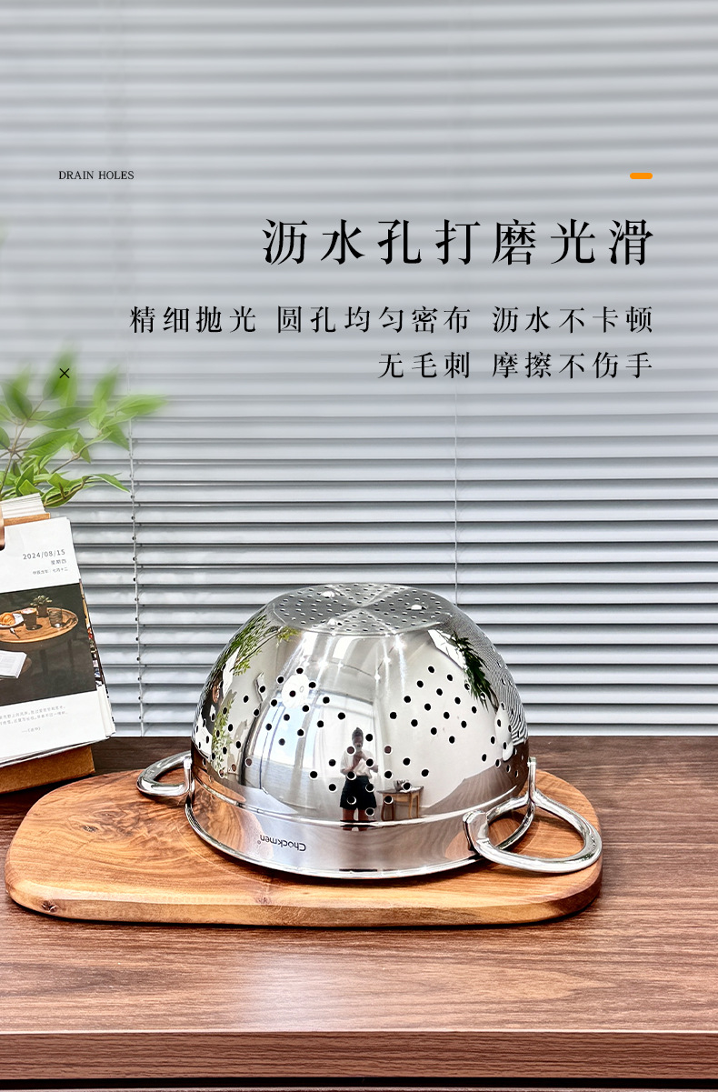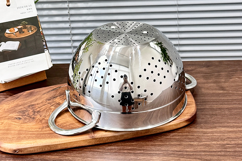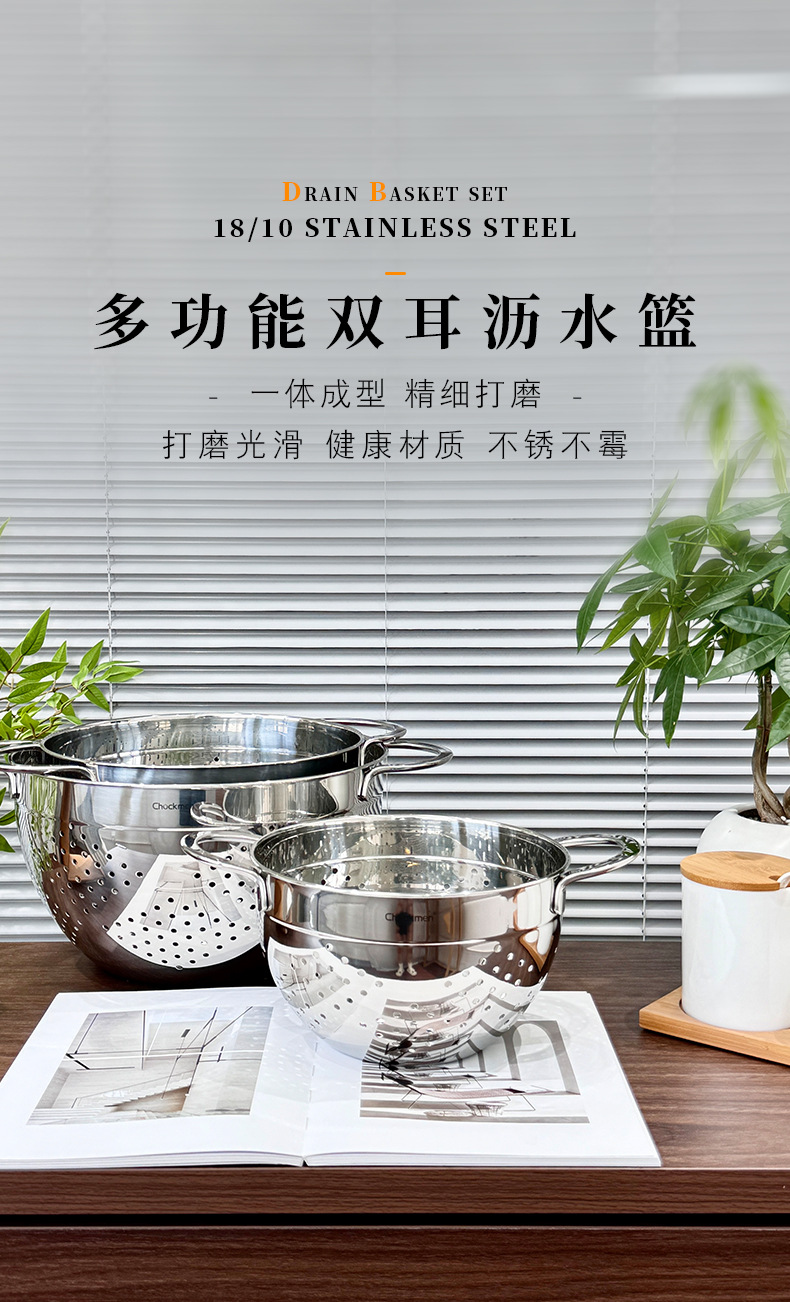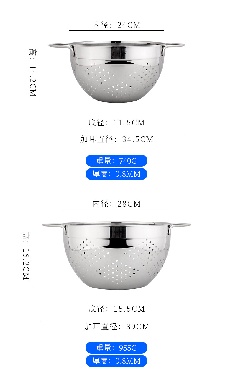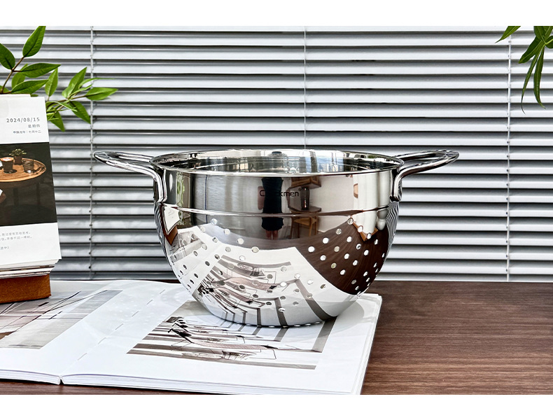 Chockmen Zhuo Deming 18 / 10 de acero inoxidable canasta de drenaje de agua melón frutas y verduras lavar cestas de frutas filtradas