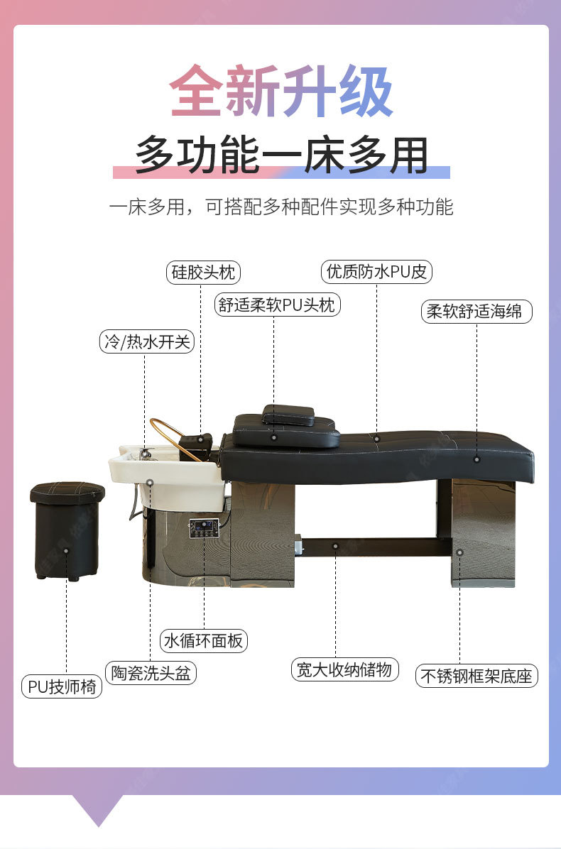 Barbería cama de lavado de cabello cama especial tailandesa cama de lavado de cabello cama de cabello de acero inoxidable temperatura constante cama de lavado de cabello