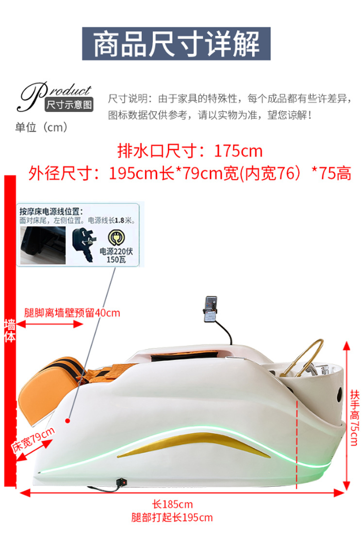 Cerámica bañera FRP masaje cama de lavado de cabello cama eléctrica sala de belleza temperatura constante calefacción cama de masaje fábrica de exportación