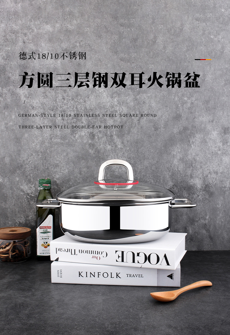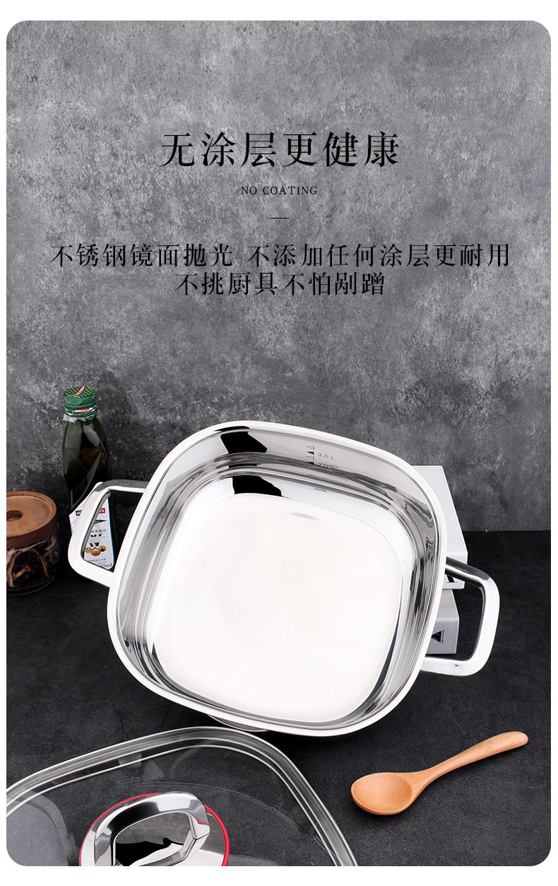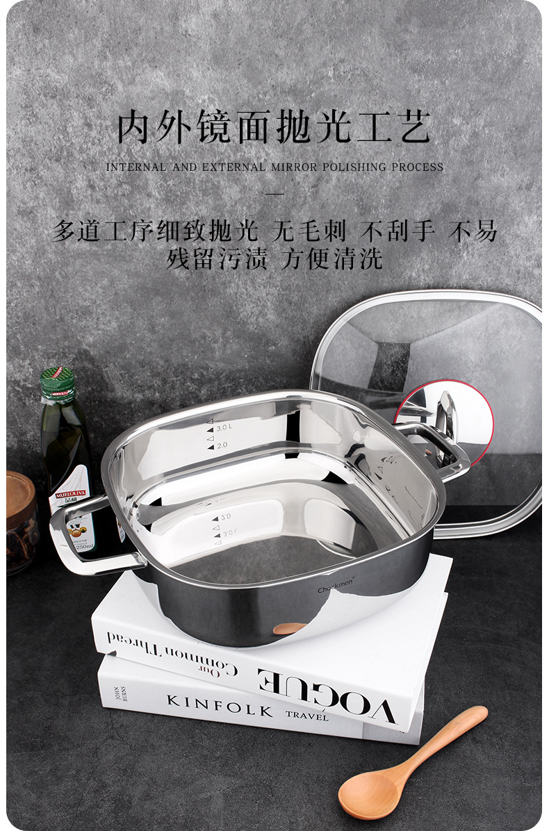 Chockmen Zhuo Deming cuadrado olla casera de acero inoxidable 304 doble oreja olla caliente horno de borde horno frigorífico