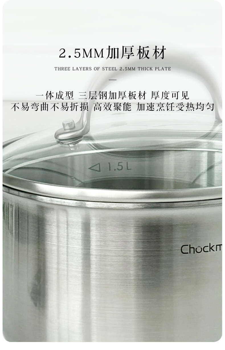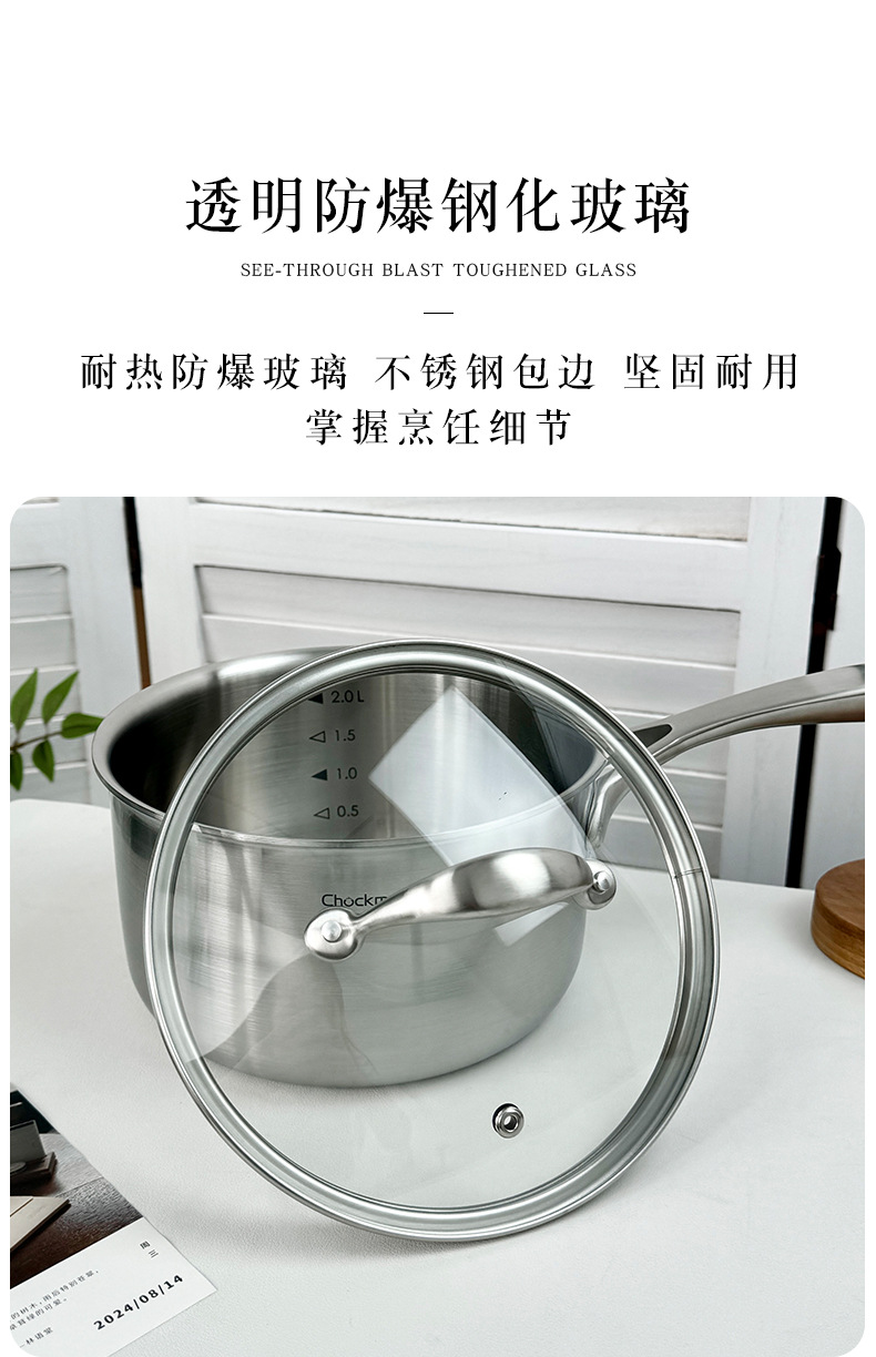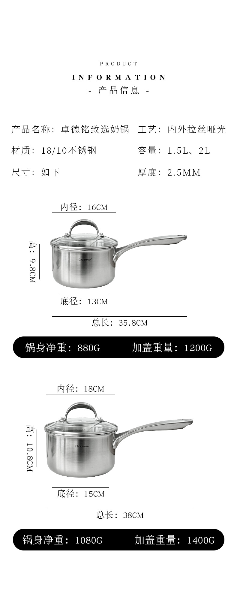 Chockmen Zhuo Deming 18 / 10 de acero inoxidable de un solo mango de leche 16 / 18cm de paneles de fideos suplementarios con escala