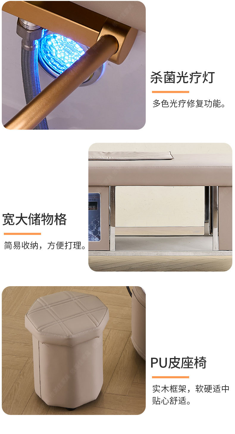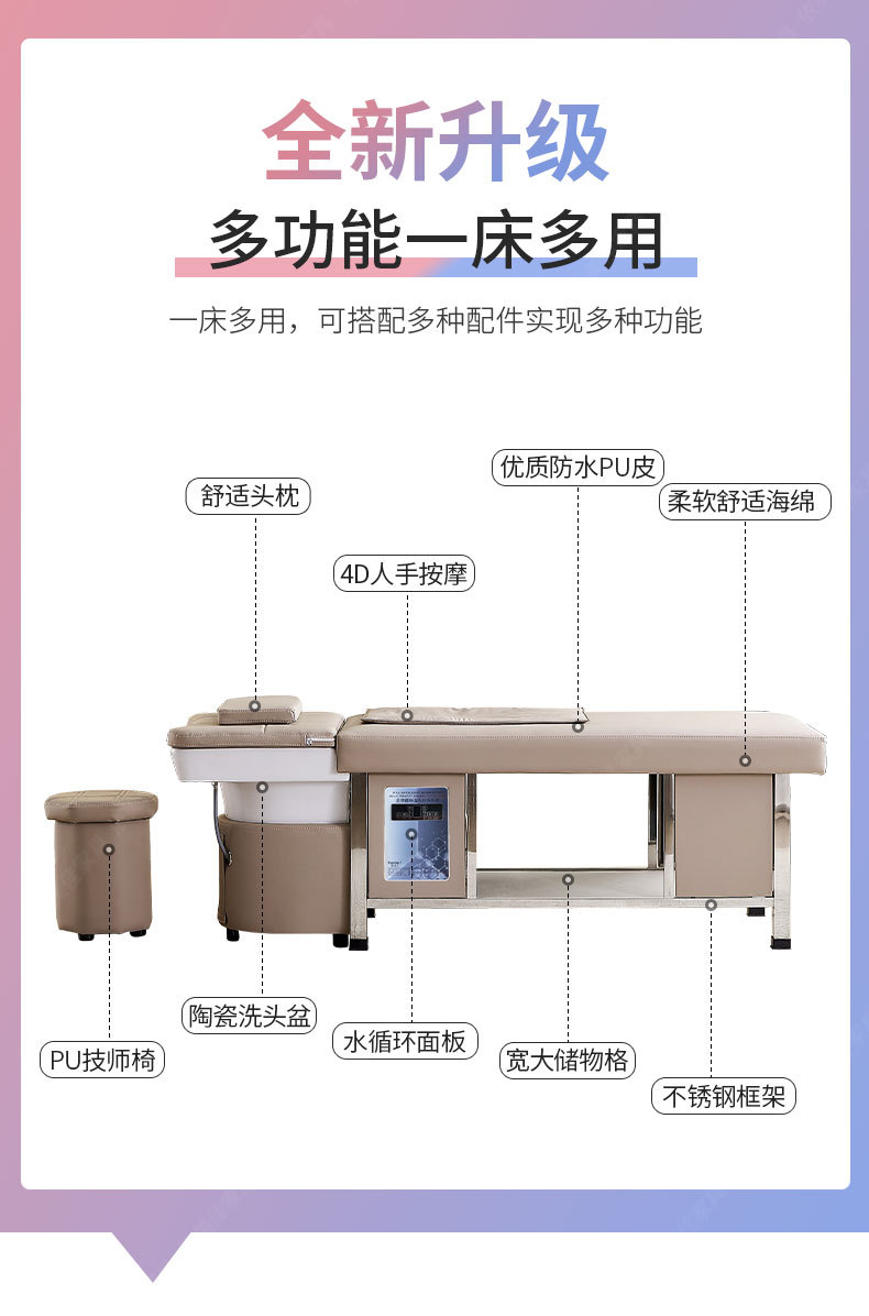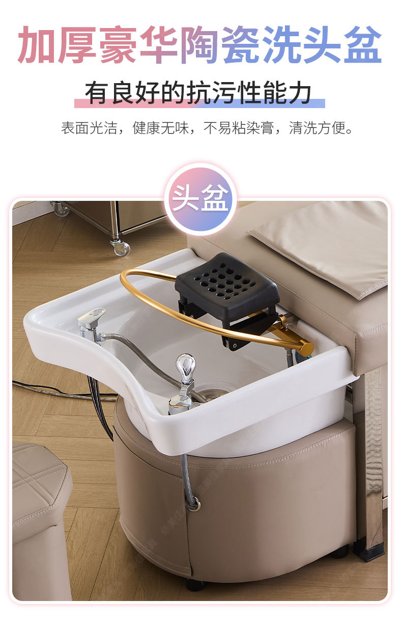 Fábrica de suministro directo con función de masaje lavabo cerámico cama de lavado de cabeza circulación de agua fumigante con calentador de agua cama de belleza salón de peluquería