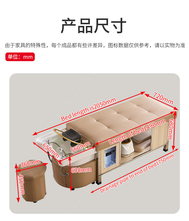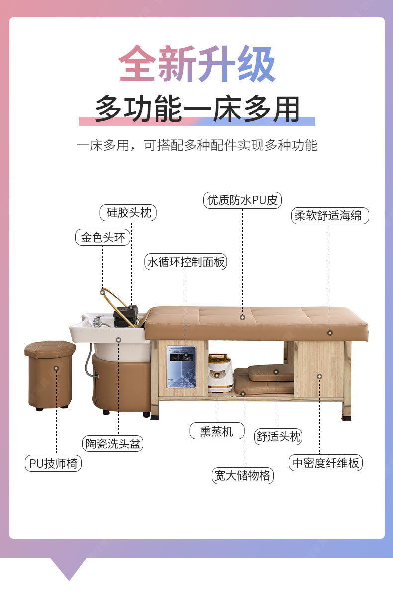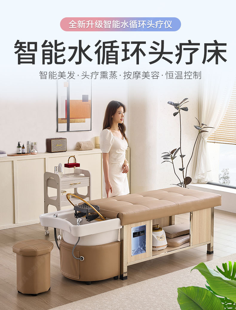 Masaje cama de lavado de cabello de tipo tailandés terapia de cabello de acero inoxidable temperatura constante circulación de agua salón de belleza fumigación lavado de la cara para oídos