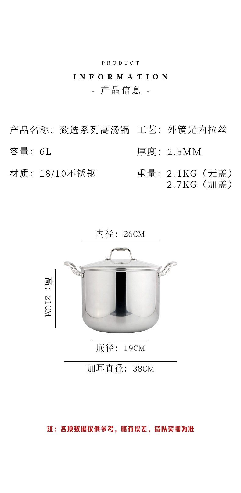 Chockmen Zhuo Deming 18/10 selección de acero inoxidable 22cm cubo de caldo 6L estufa sin recoger olla de acero de tres capas