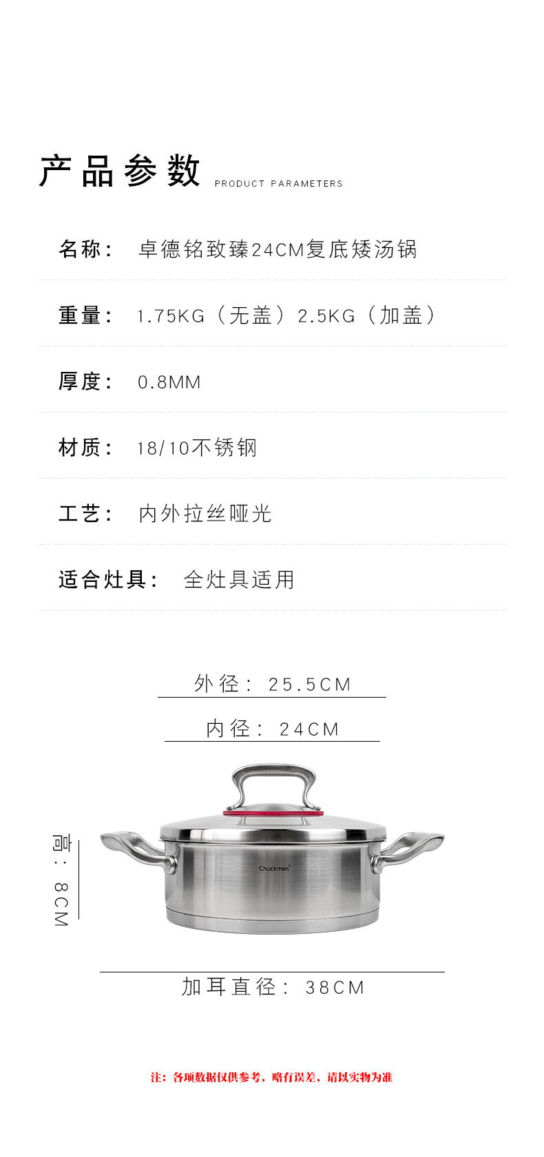 Chockmen Zhuo Deming 18 / 10 acero inoxidable 24cm forjado base de cocina de cocina de cocina de cocina de acero