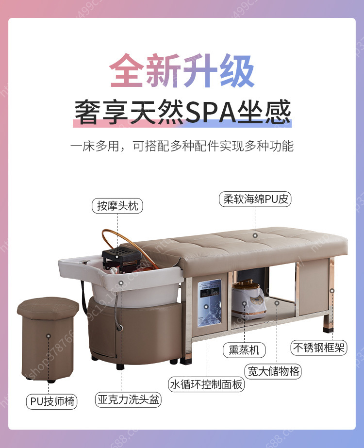 Cama de masaje de terapia de cabello para salón de belleza especial de peluquería calentador de agua de temperatura constante de circulación de agua fumigante tailandés lavabo de cabello
