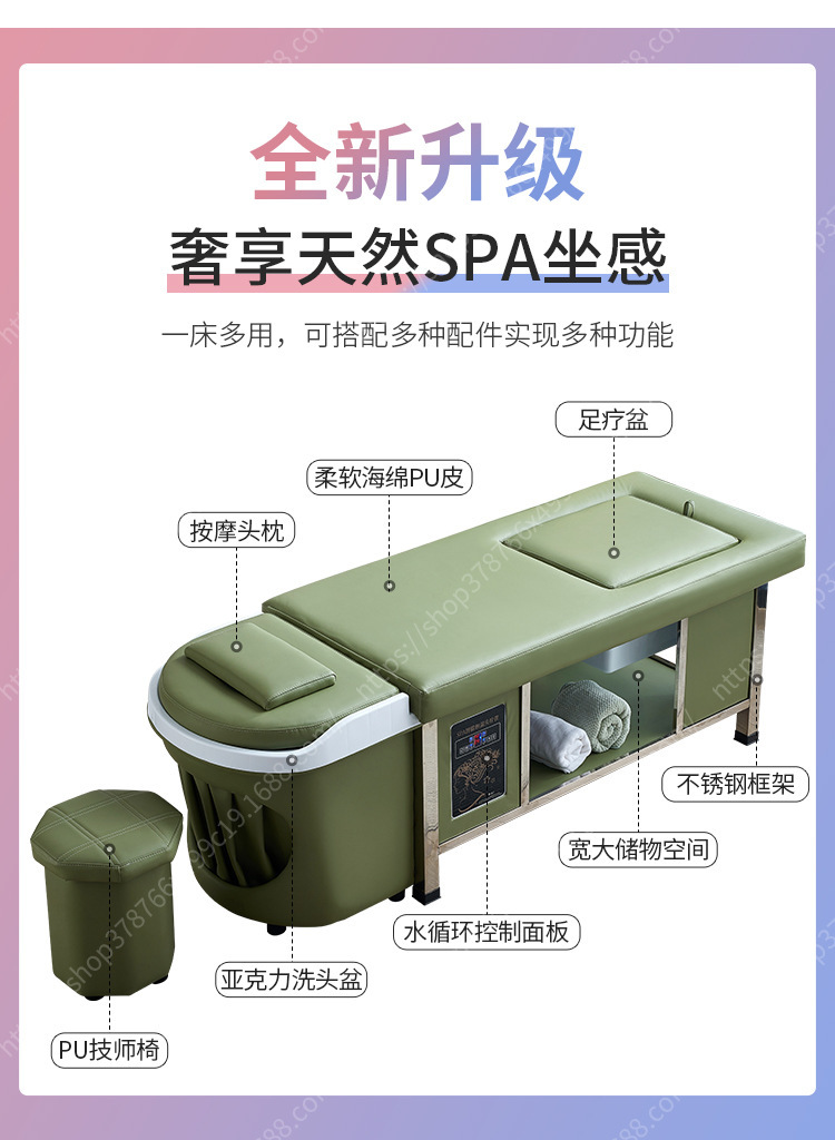 Cama eléctrica de alta gama para salón de belleza cama de lavado de cabello especial cama de masaje cama de terapia de cabeza de masaje circulación de agua fumigación baño de pies de marea