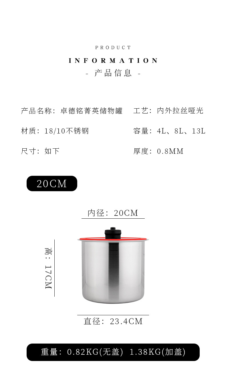 Chockmen Zhuo Deming 18 / 10 tanque de almacenamiento sellado multipropósito de acero inoxidable a prueba de humedad a prueba de insectos barril de arroz de 20 kg