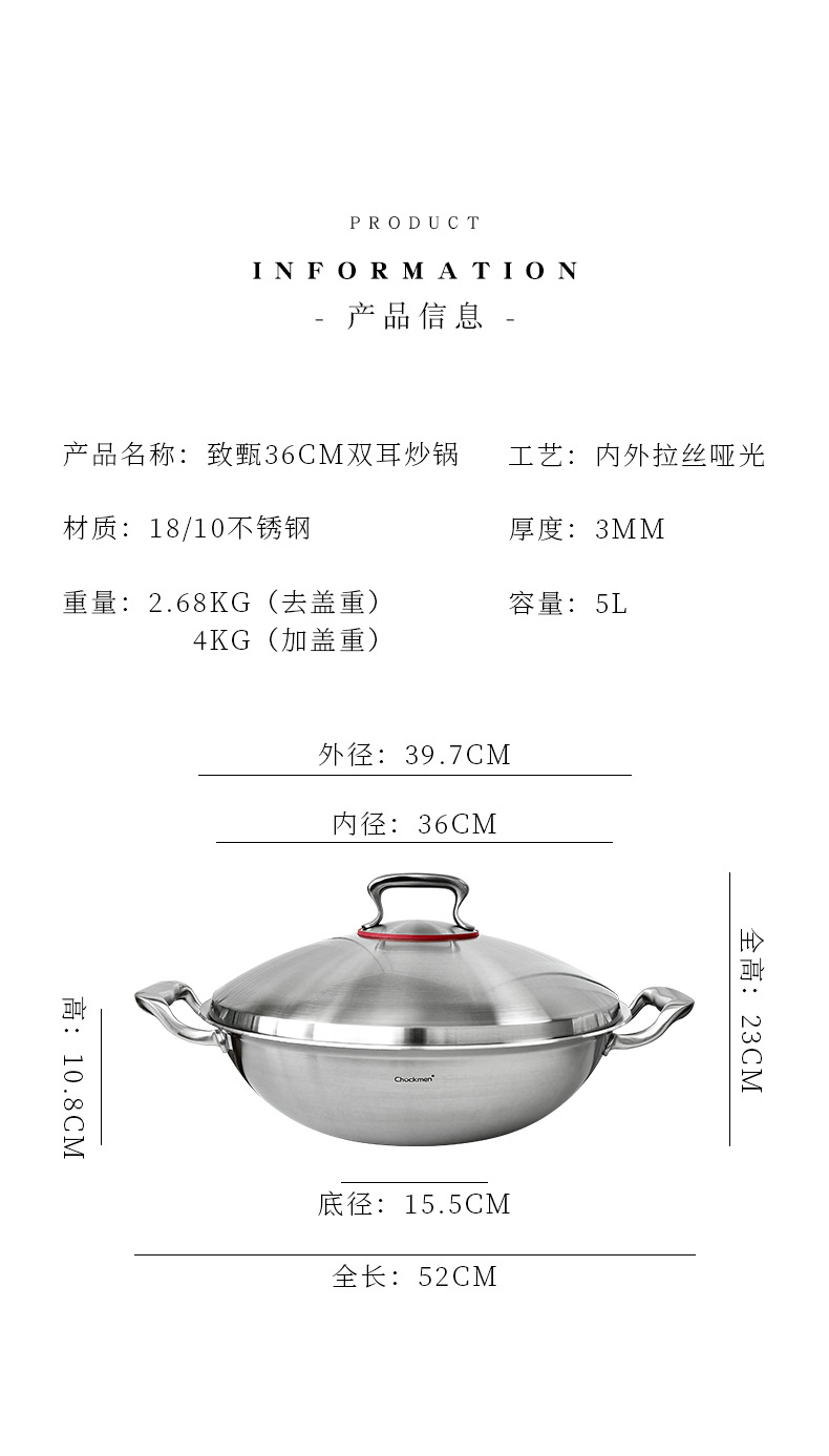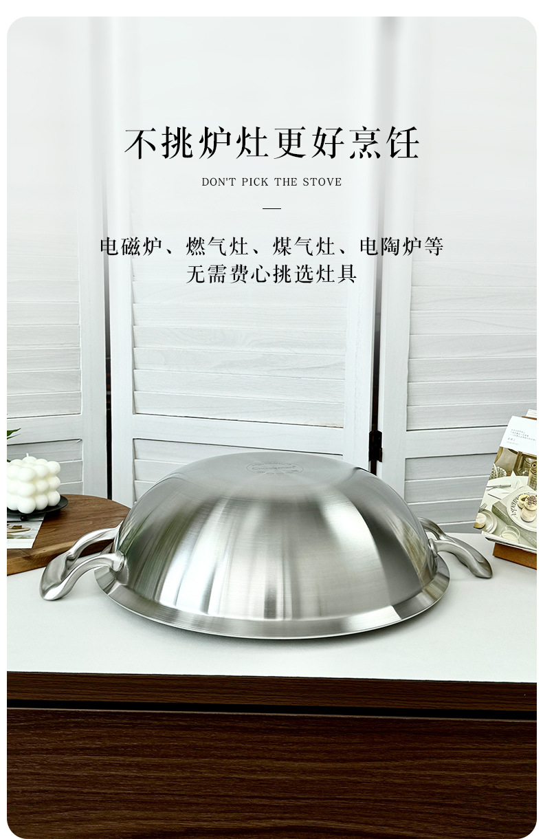 Zhuo Deming 18 / 10 de acero inoxidable de doble oreja olla 36cm de gran capacidad de gran familia toda cubierta de acero salsa de platos fritos