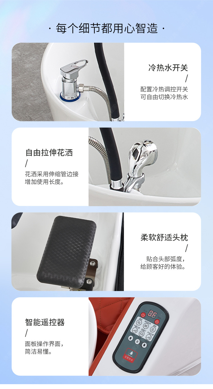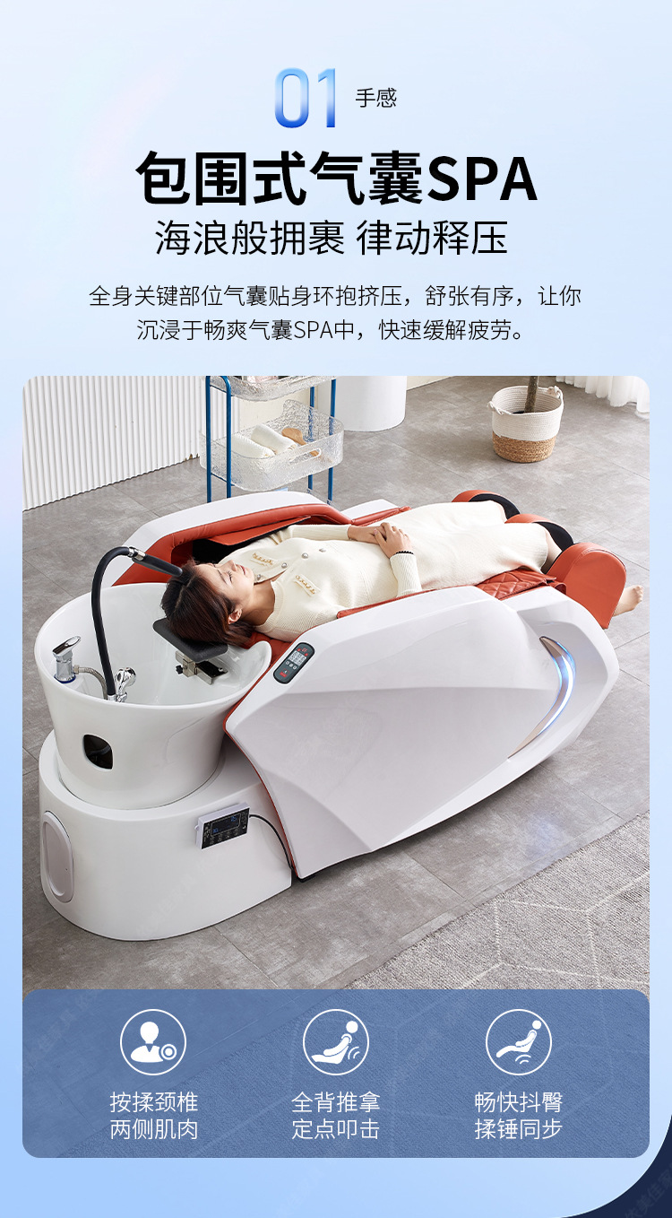 Cama de lavado de cabello de masaje inteligente para barbería especial de circulación de agua a temperatura constante, sala de peluquería multifuncional de tratamiento de cabello, cama de lavado de cabello
