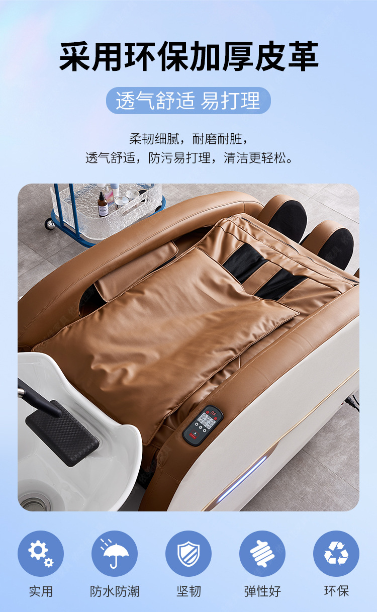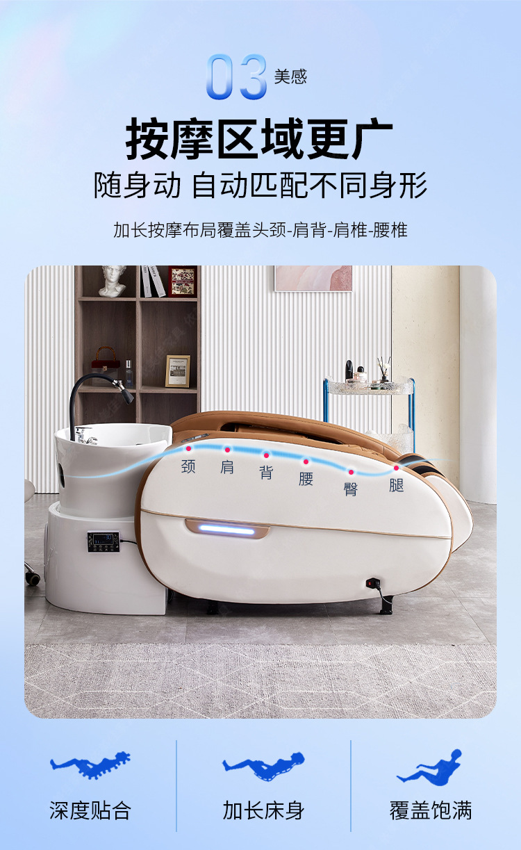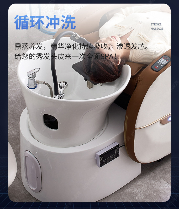 Cerámica de alta calidad cuero totalmente automático inteligente masaje eléctrico lavabo de cabello barbería cabello especial salón de cabello cama