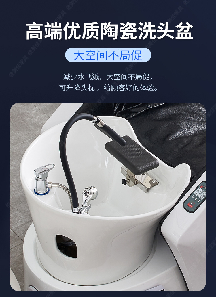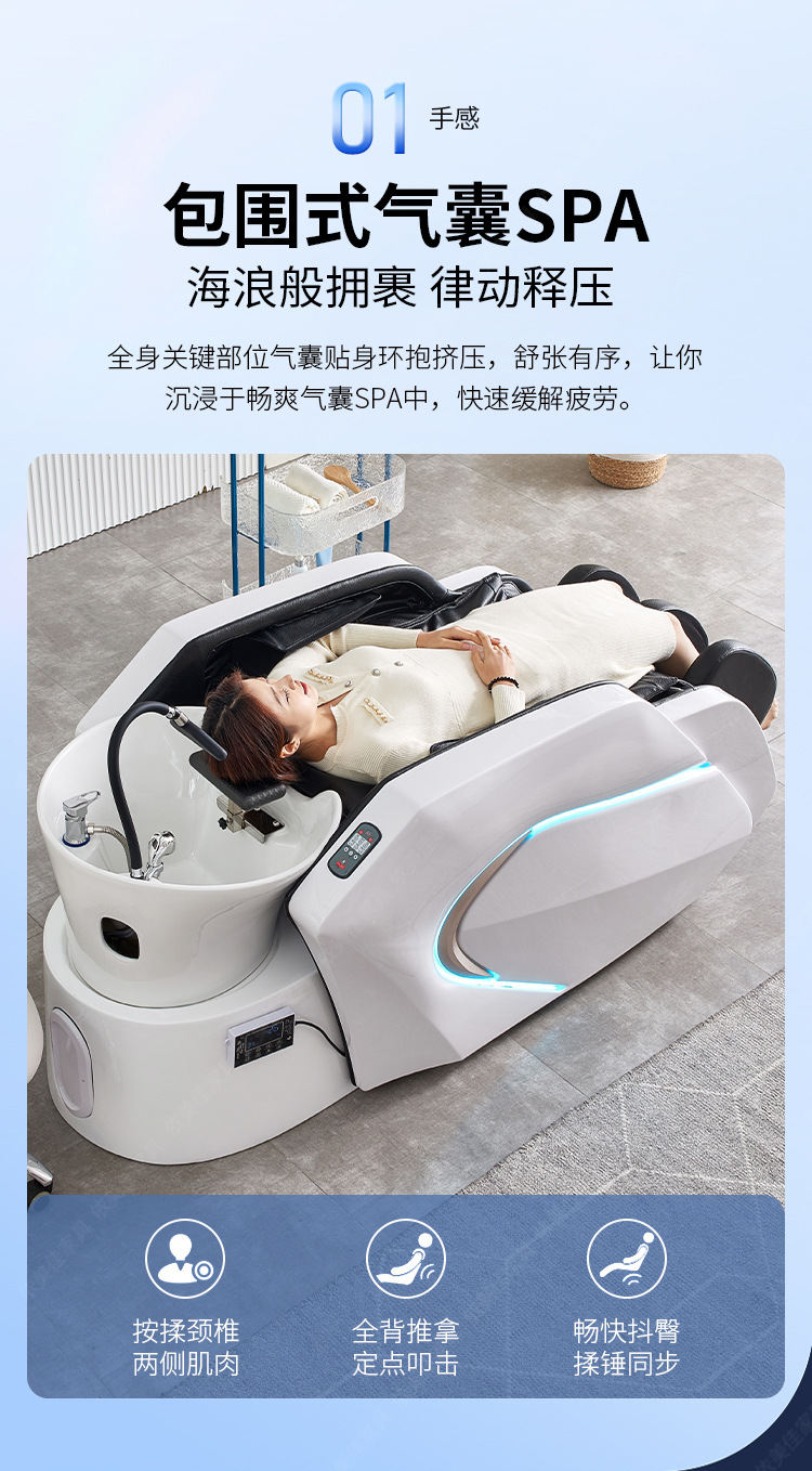 Fabricante de lavabo de masaje de cerámica alta calidad totalmente automática barbería eléctrica inteligente cabellera cama de tratamiento de cabeza especial