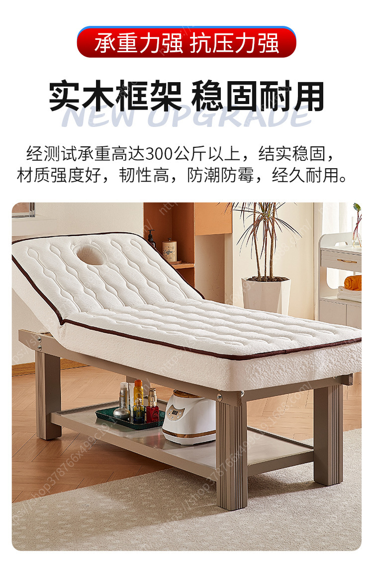 Cama de belleza de látex de madera maciza eléctrica, salón de belleza, cama de tatuaje de pestañas de alta gama, masaje, fisioterapia, cama de masaje con agujeros