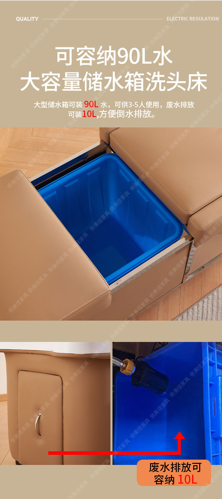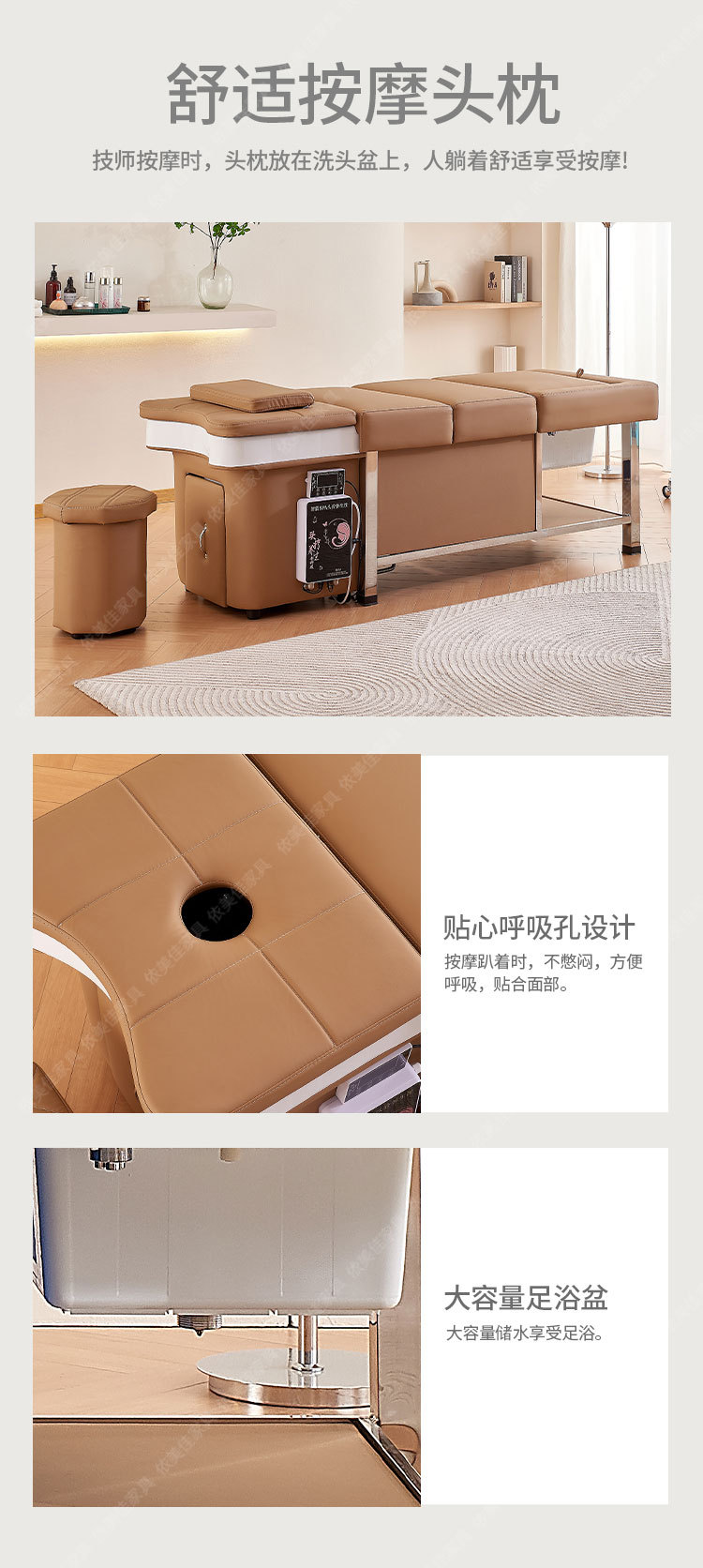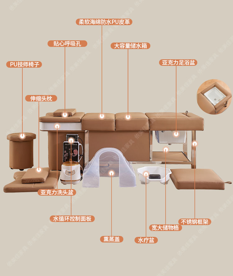 Cama de masaje de circulación de agua de temperatura constante tipo almacenamiento de agua de salón de belleza sin conexión de cabeza y pie