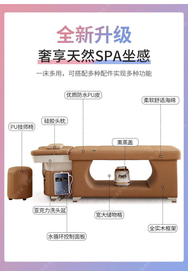 Cama de lavado de cabello de alta calidad, cama de masaje, peluquería, salón de belleza, calentador de agua, ciclo de agua de temperatura constante, fumigación tailandesa