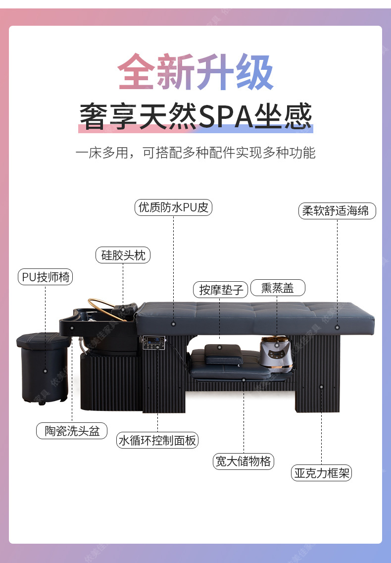 Masaje tailandés barbería cama especial de lavado de cabello, salón de belleza, salón de belleza, salón de belleza, cama de belleza multifuncional
