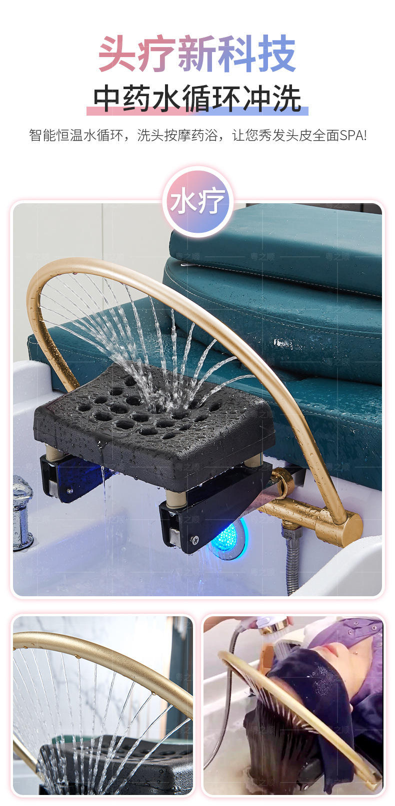 Cama de tratamiento de alta gama, masaje de belleza, barbería, fumigación de circulación de agua especial, lavabo tailandés integral