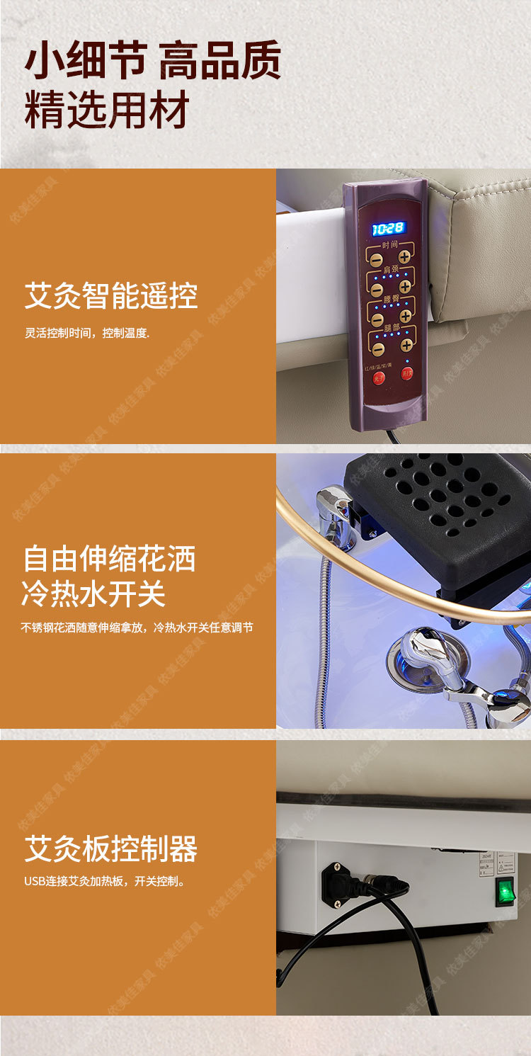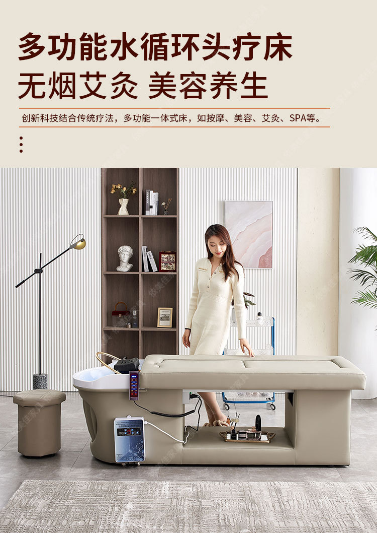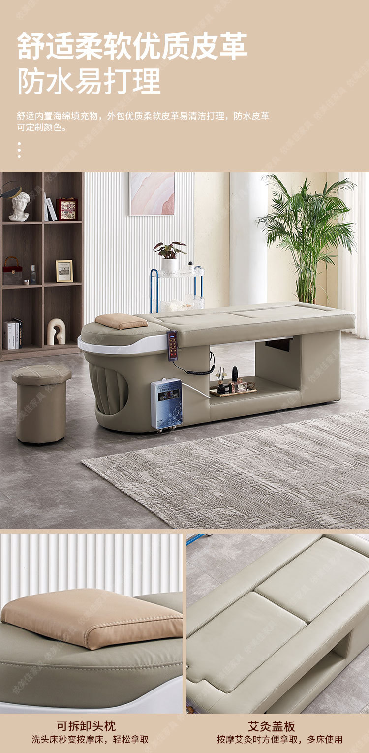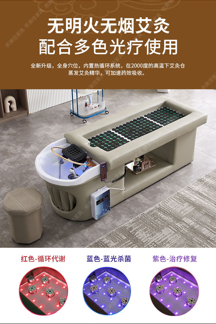 Cama de fisioterapia de moxibustión de cuerpo entero sin humo, fumigación de medicina tradicional china en la cabeza de la cama de moxibustión, tratamiento de agua y lavado de cabello circulante, especial para salón de belleza