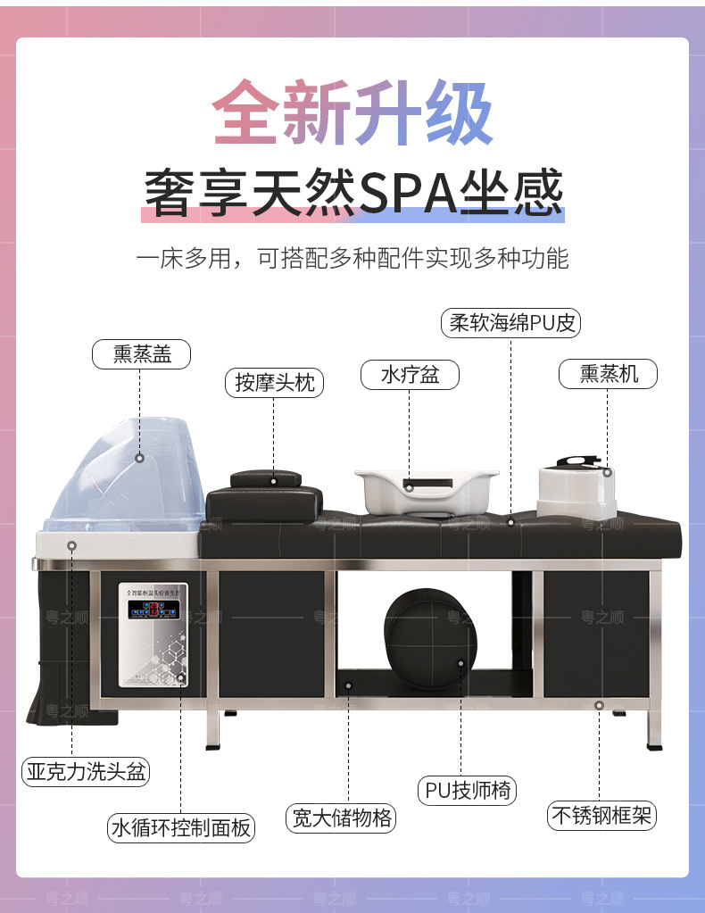 Barbería de alta gama, cama de lavado de cabello especial, calentador de agua de fumigación, circulación de agua, masaje integral, cama de lavado de cabello