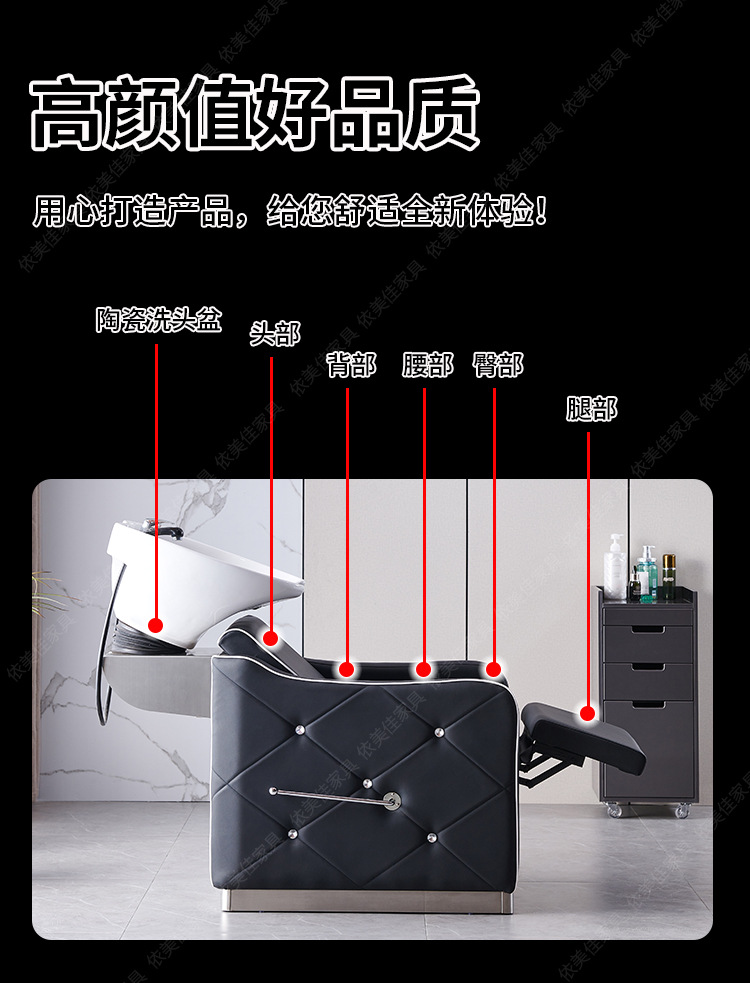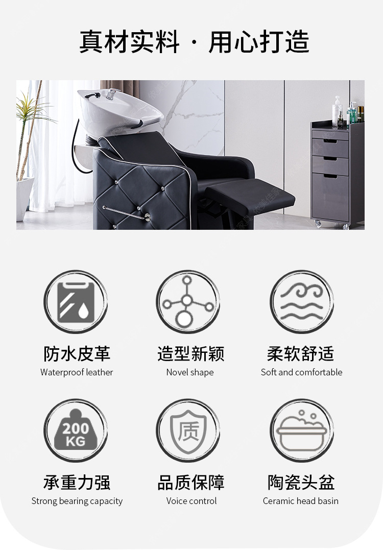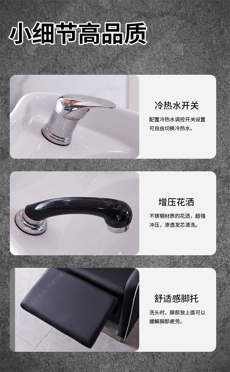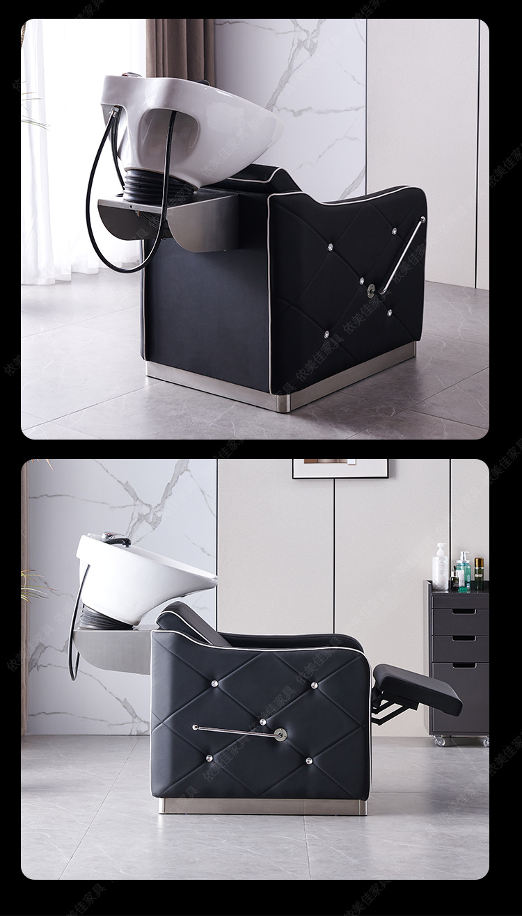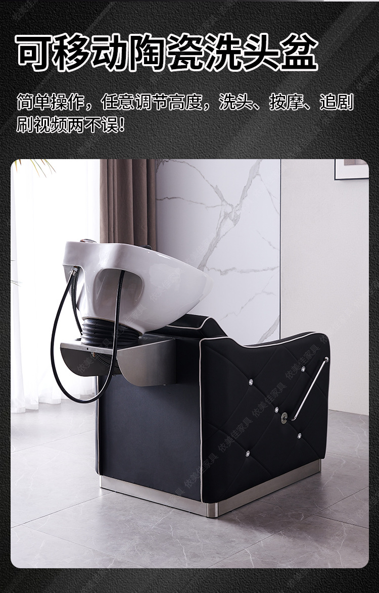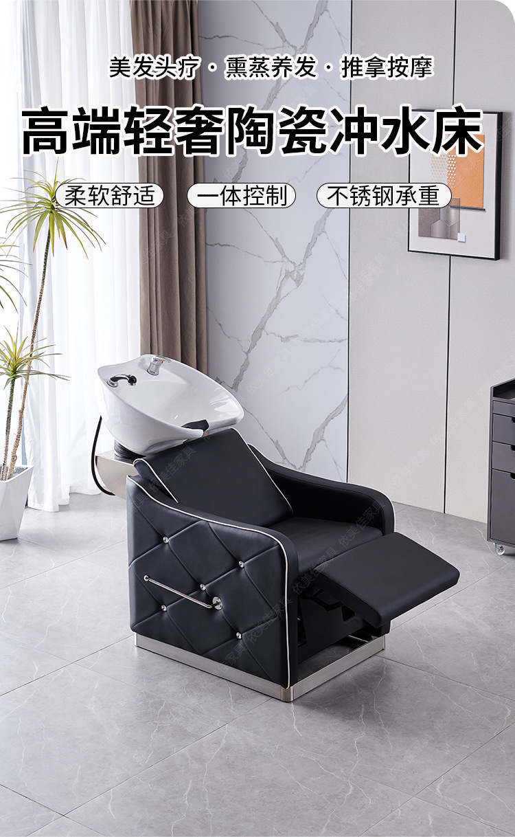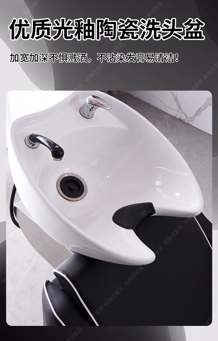 Suministro directo de fábrica cama de champú peluquería ocio fisioterapia lavabo de cerámica con diamante medio acostado cama de ponche cama de lavado