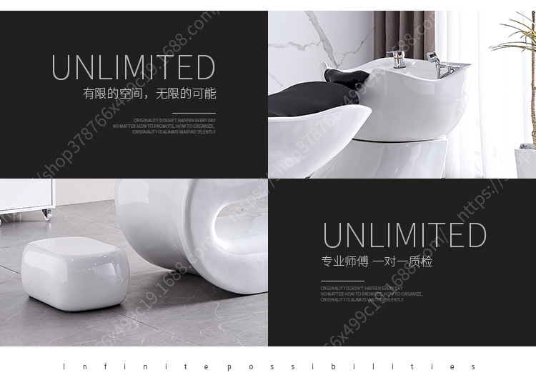 Salón de Pelo Semi-acostado cama de champú tienda de peluquería especial Cama de lavado cama de masaje barbería lavabo de cerámica cama de champú
