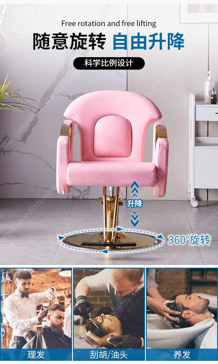 2023 nuevo salón de peluquería Silla de peluquero al por mayor de color rosa Silla de peluquería de lujo ligero Silla de peluquería Silla elevadora