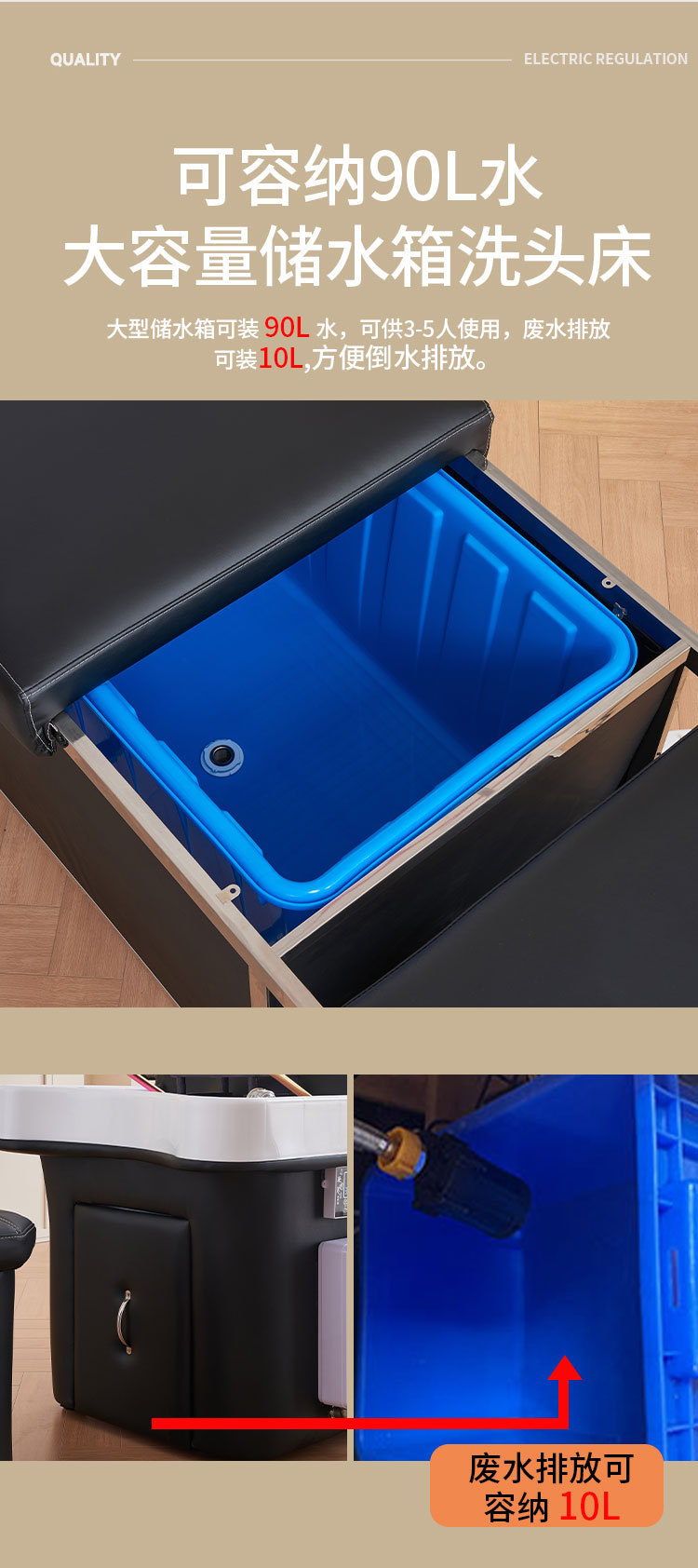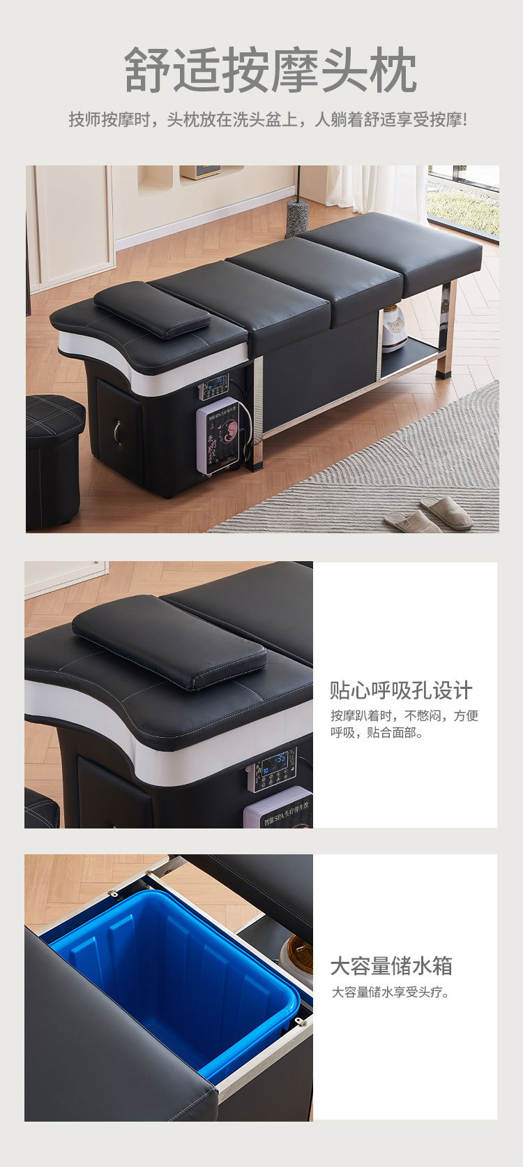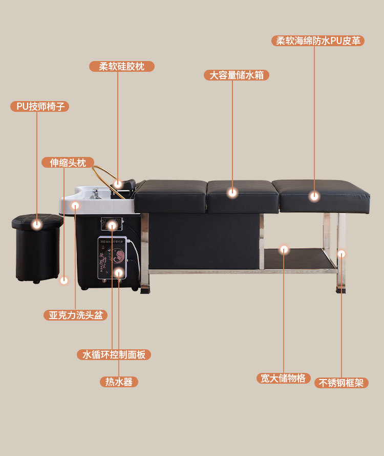 Tratamiento de cabeza de drenaje sin agua cama de champú peluquería salón de belleza almacenamiento de agua especial temperatura constante circulación de agua cama de masaje