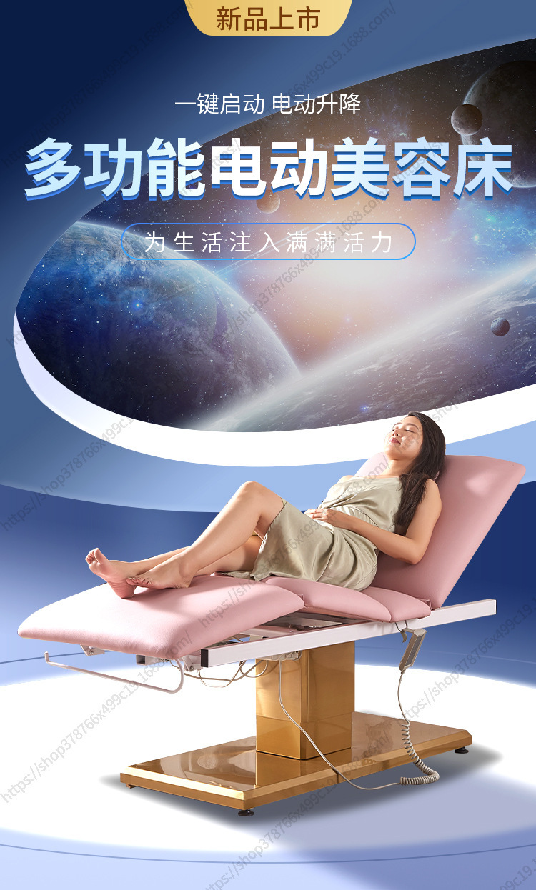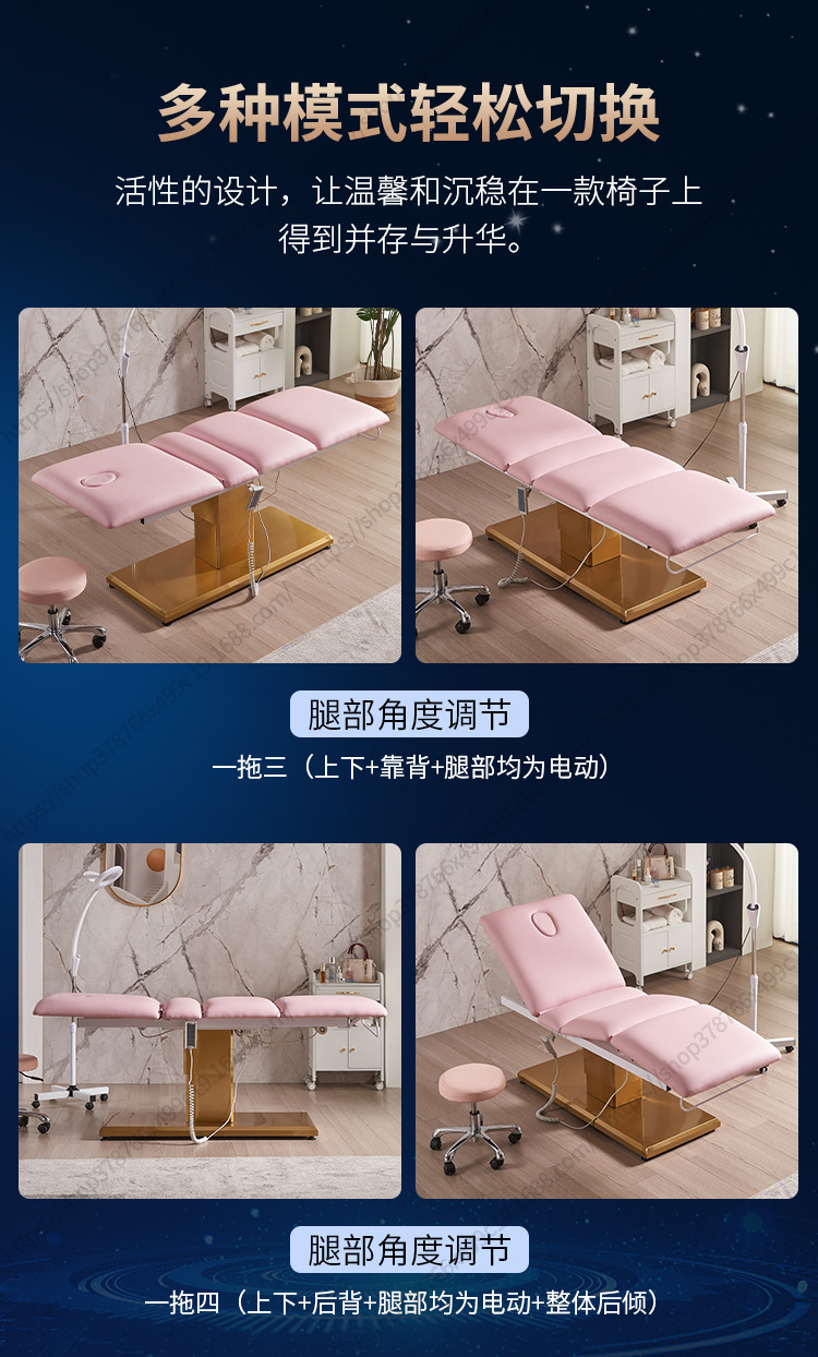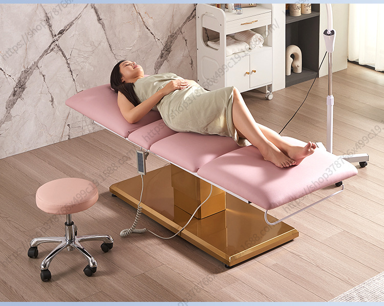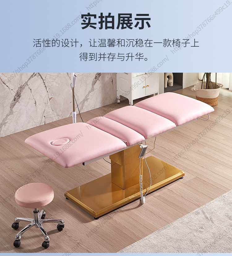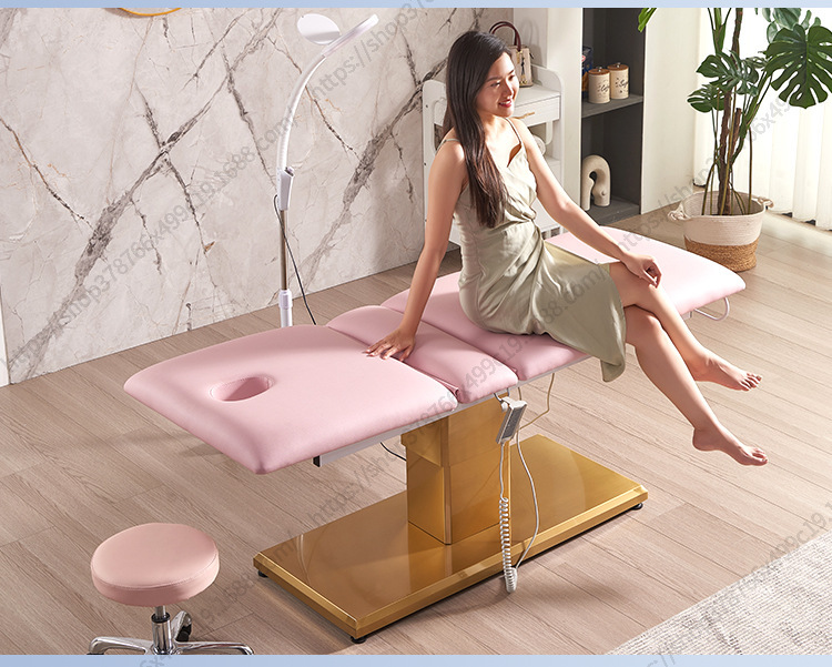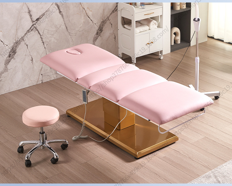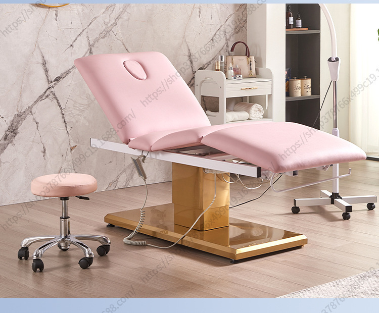 Nuevo Comercio exterior Cama de belleza eléctrica salón de belleza Cama de masaje de base dorada Cama facial de belleza médica Cama de tatuaje de pestañas