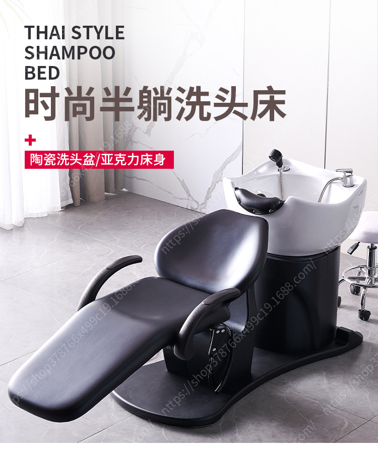 Salón de Pelo Semi-acostado cama de champú tienda de peluquería especial Cama de lavado cama de masaje barbería lavabo de cerámica cama de champú