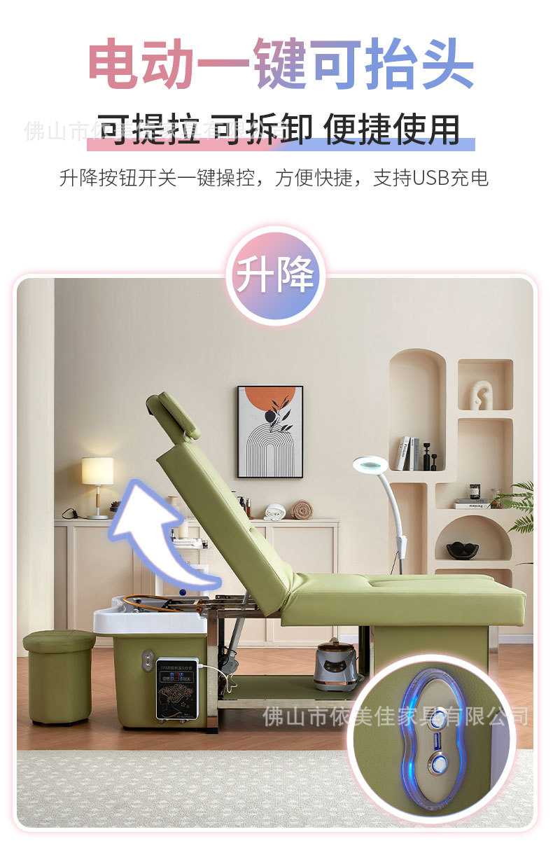 Cama eléctrica de elevación de alta gama salón de belleza cama de champú especial cama de masaje cama de tratamiento de cabecera cama de circulación de agua cama de vapor