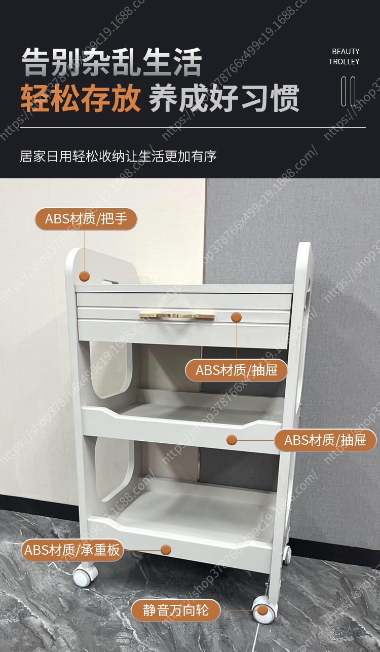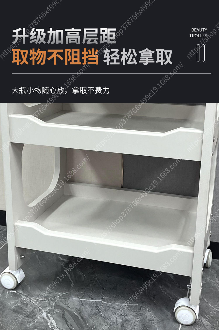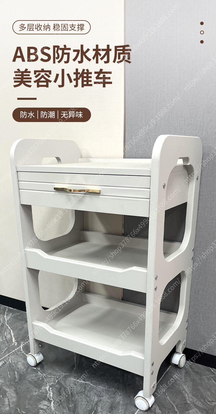 Salón de belleza carro especial gestión de la piel móvil de mano empuje estante de almacenamiento de plástico cuidado instrumento mano herramienta de empuje Coche